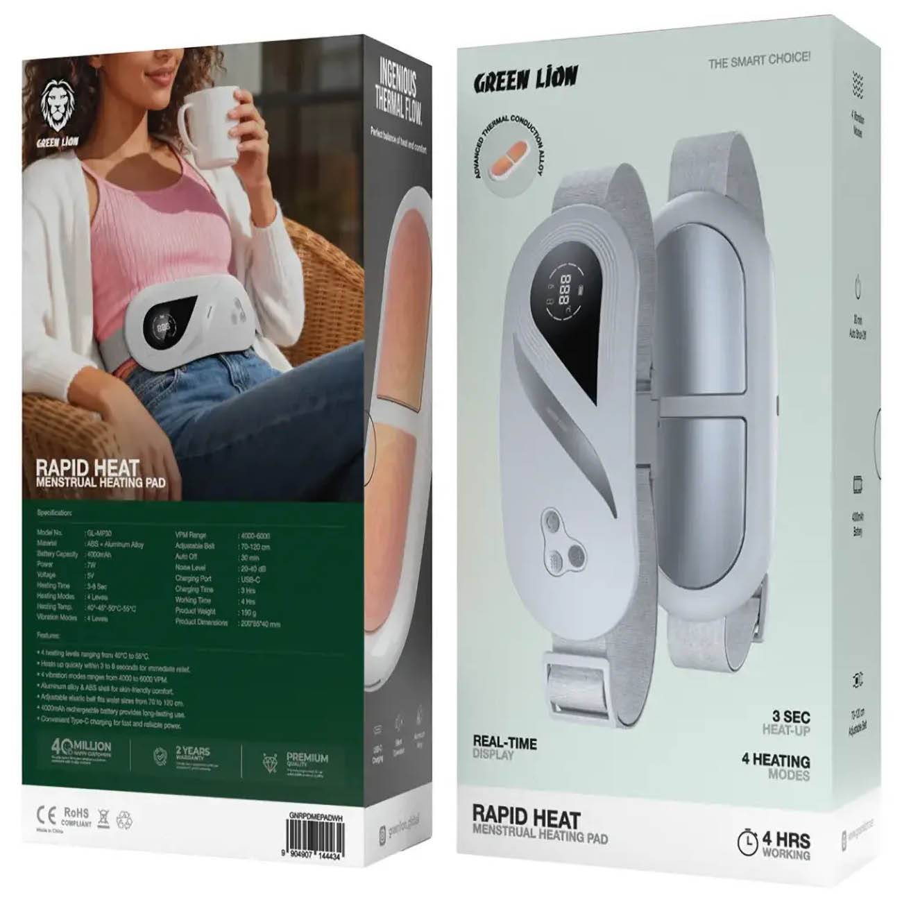 Green Electric Heating Pad / 4 Heat Levels / Fast Heating / Lightweight