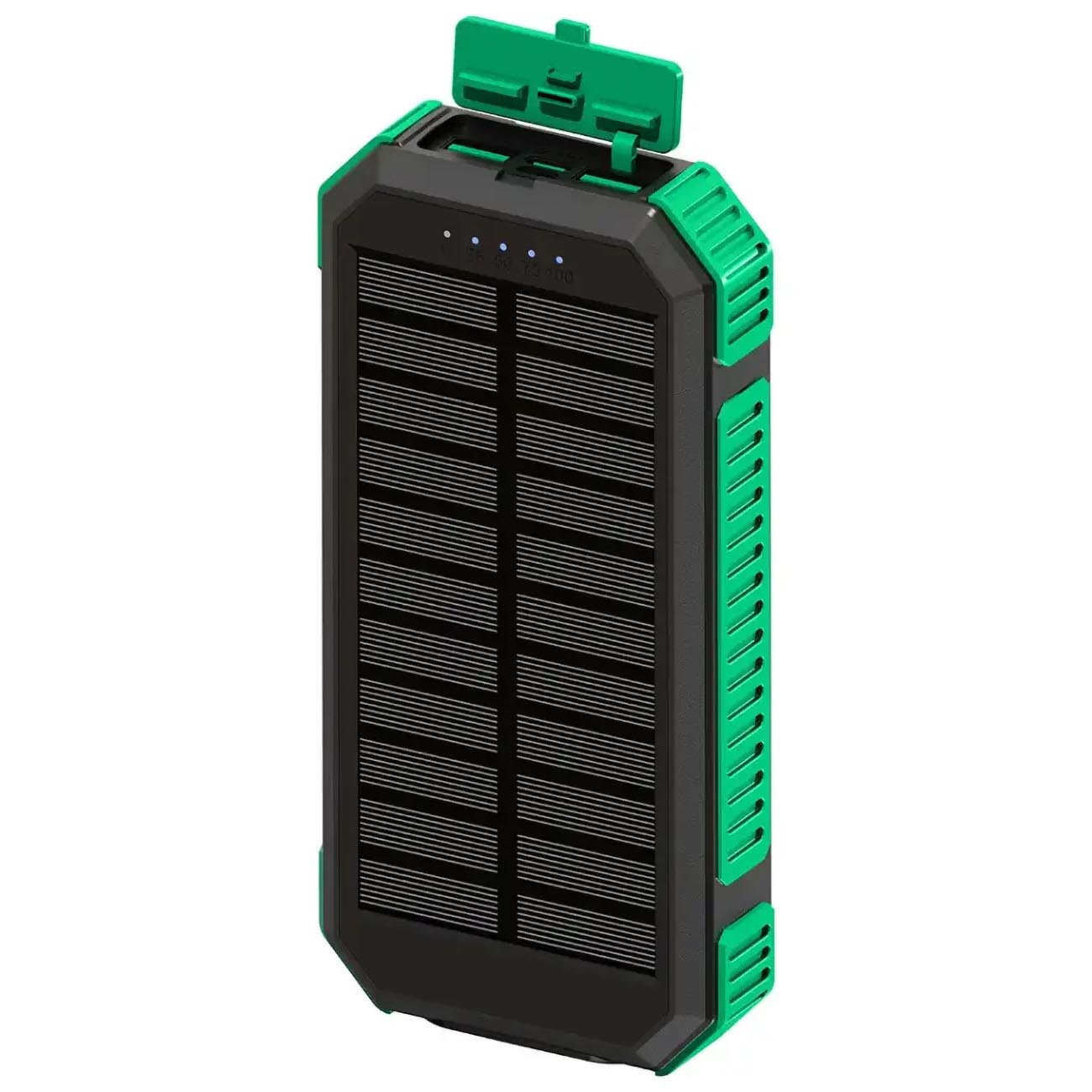 Green 20000mAh Power Bank / Supports Solar Charging / Type-C Port + 2 USB Ports / Built-in Light