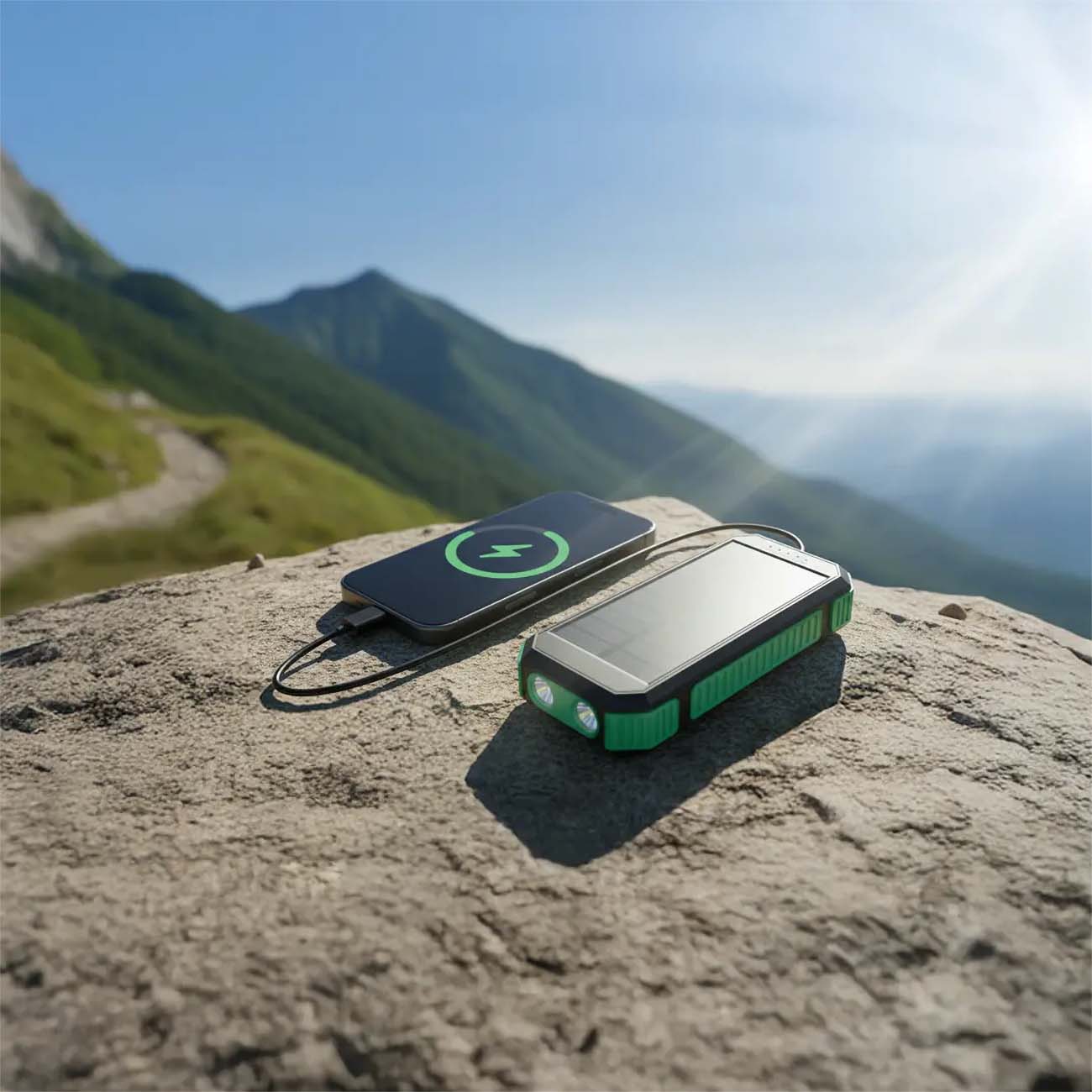 Green Wireless Power Bank 10,000mAh / Supports Solar Charging / Built-in Type-C & Lightning Cable