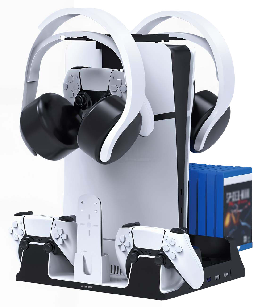 Features 2 headphone stands .. allowing you to secure your headphones after use.