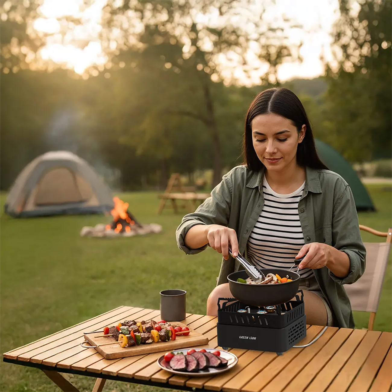 Green Qudra Portable BBQ Grill / Foldable / Strong Steel / Camping-Friendly