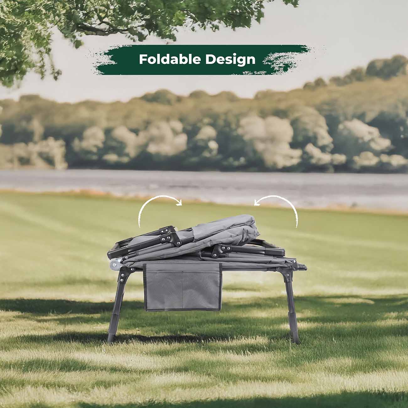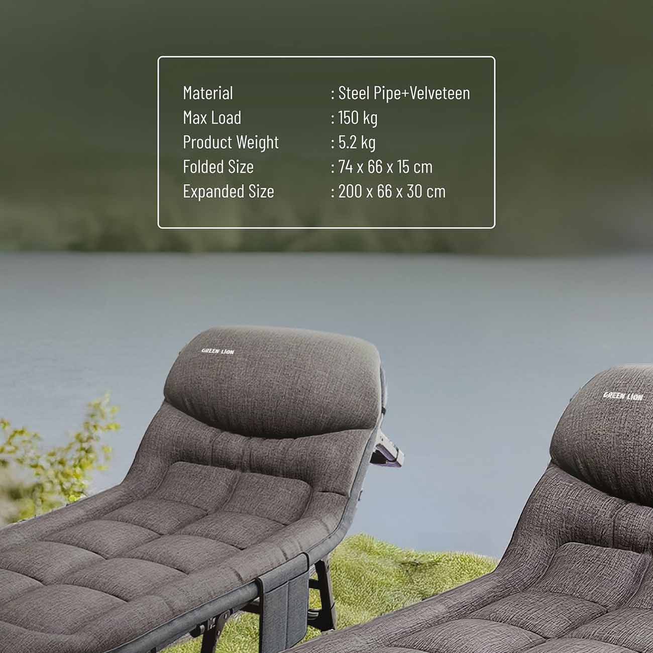 Green Camping Chair / Supports up to 120 kg / Adjustable Angle / Storage Pocket + Cup Holder