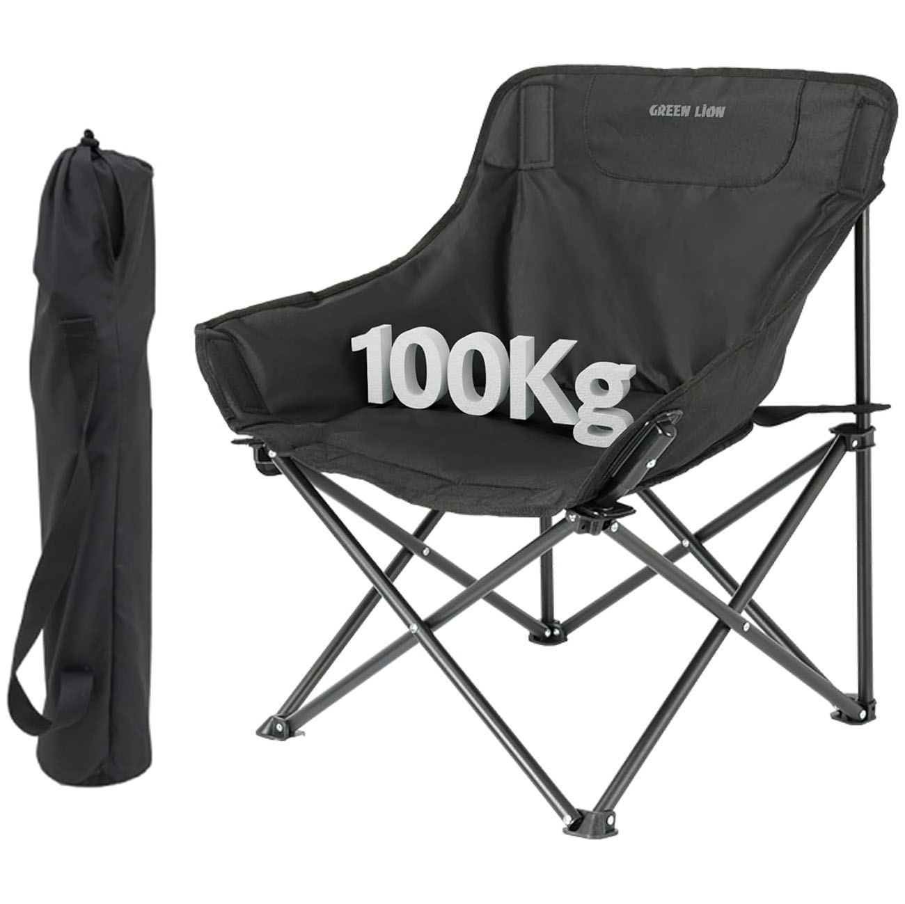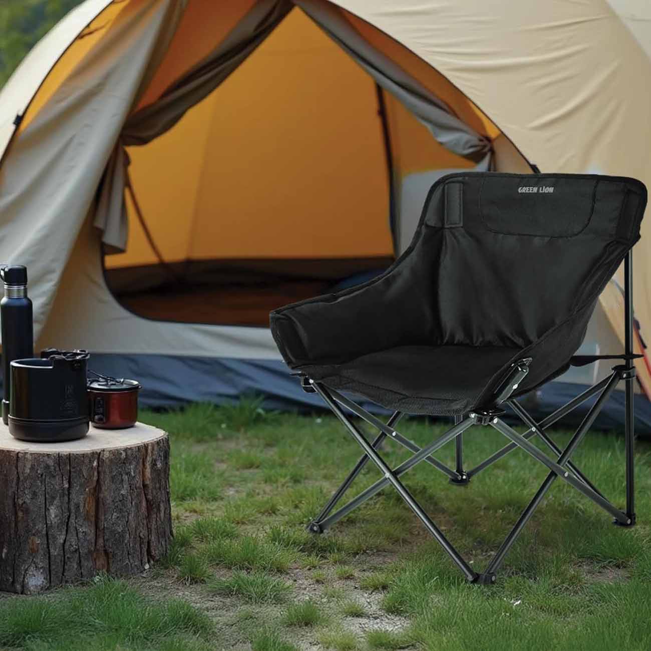 Green Camping Chair / Supports up to 120 kg / Adjustable Angle / Storage Pocket + Cup Holder