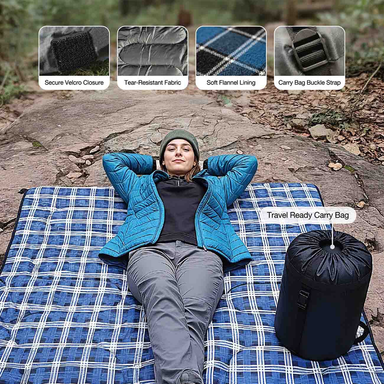 Green Inflatable Camping Pillow / Comfortable Foam / Neck Support / Self-inflation in 10 Seconds