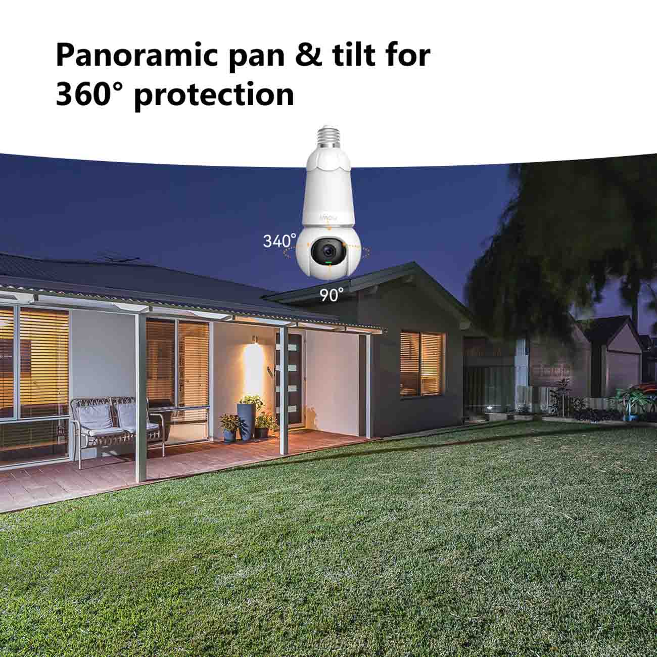 Provides panoramic rotation with a 340° horizontal and 90° vertical angle.
