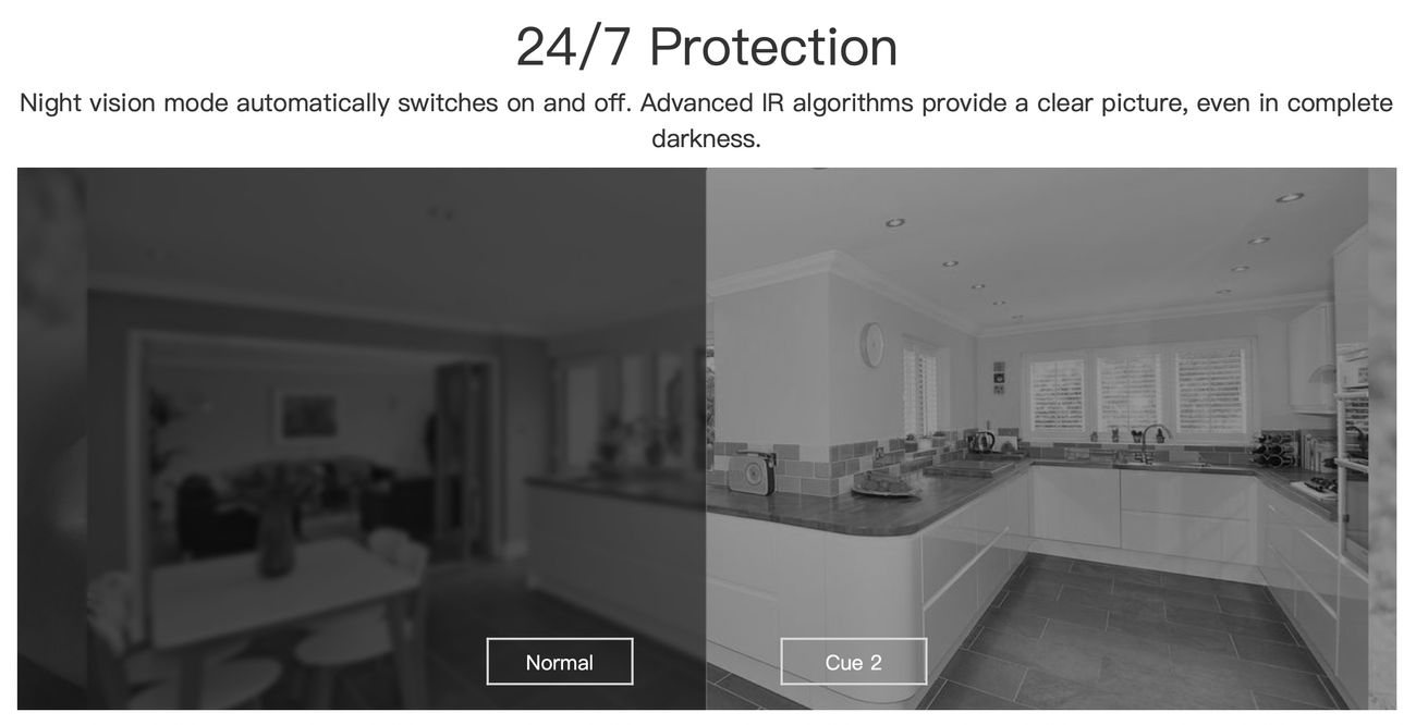 24/7 ProtectionNight vision mode automatically switches on and off. Advanced IR algorithms provide clear picture even in complete darkness.