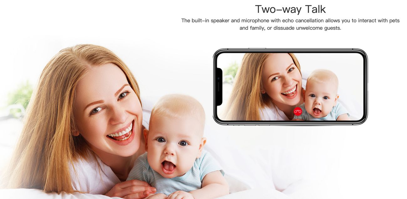Two-way TalkBuilt-in speaker and microphone with echo cancellation feature allow you to interact with pets and family or dissuade unwelcome guests.