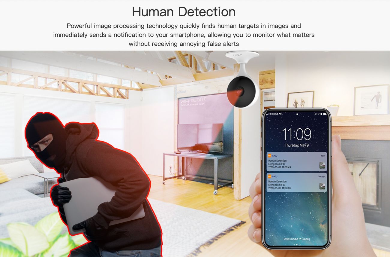Human DetectionPowerful image processing technology quickly finds human targets in images and immediately sends a notification to your smartphone, allowing you to monitor what matters without receiving annoying false alerts