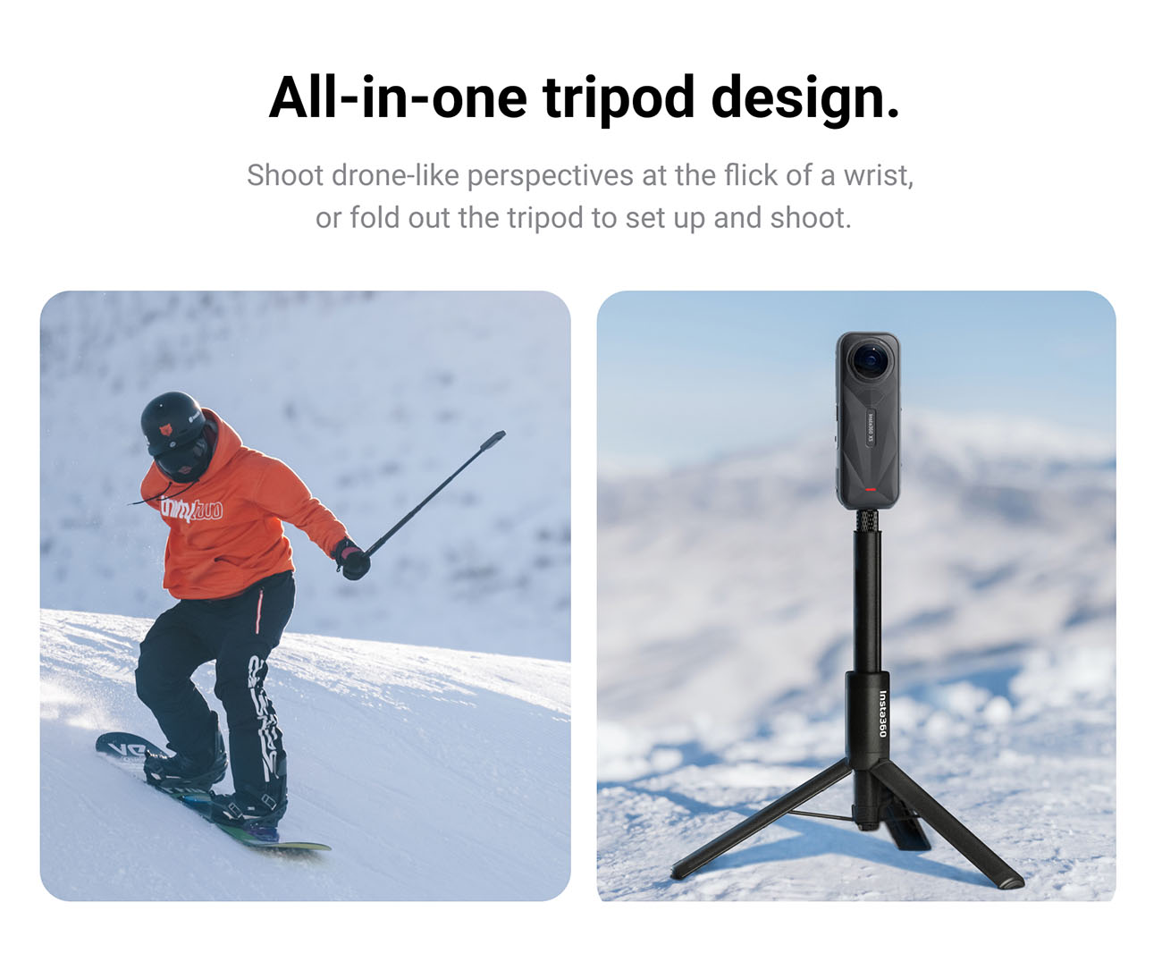 2-in-1 design .. functions as both a camera tripod and a selfie stick.