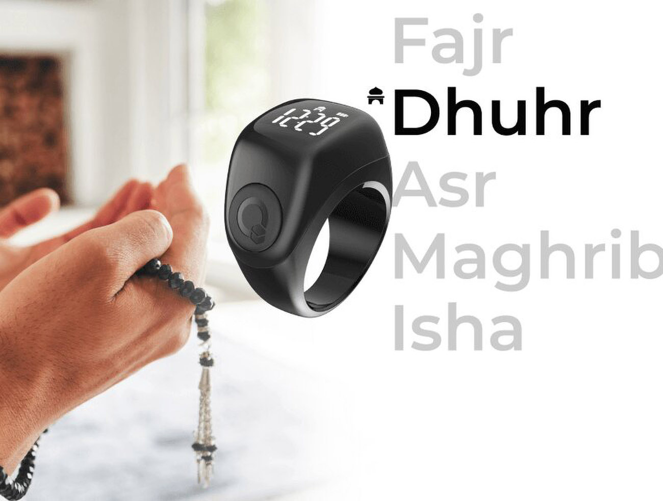 iQibla Jood Lite Zikr Ring / App Control + Prayer Reminder / Supports 3 Sizes / Black