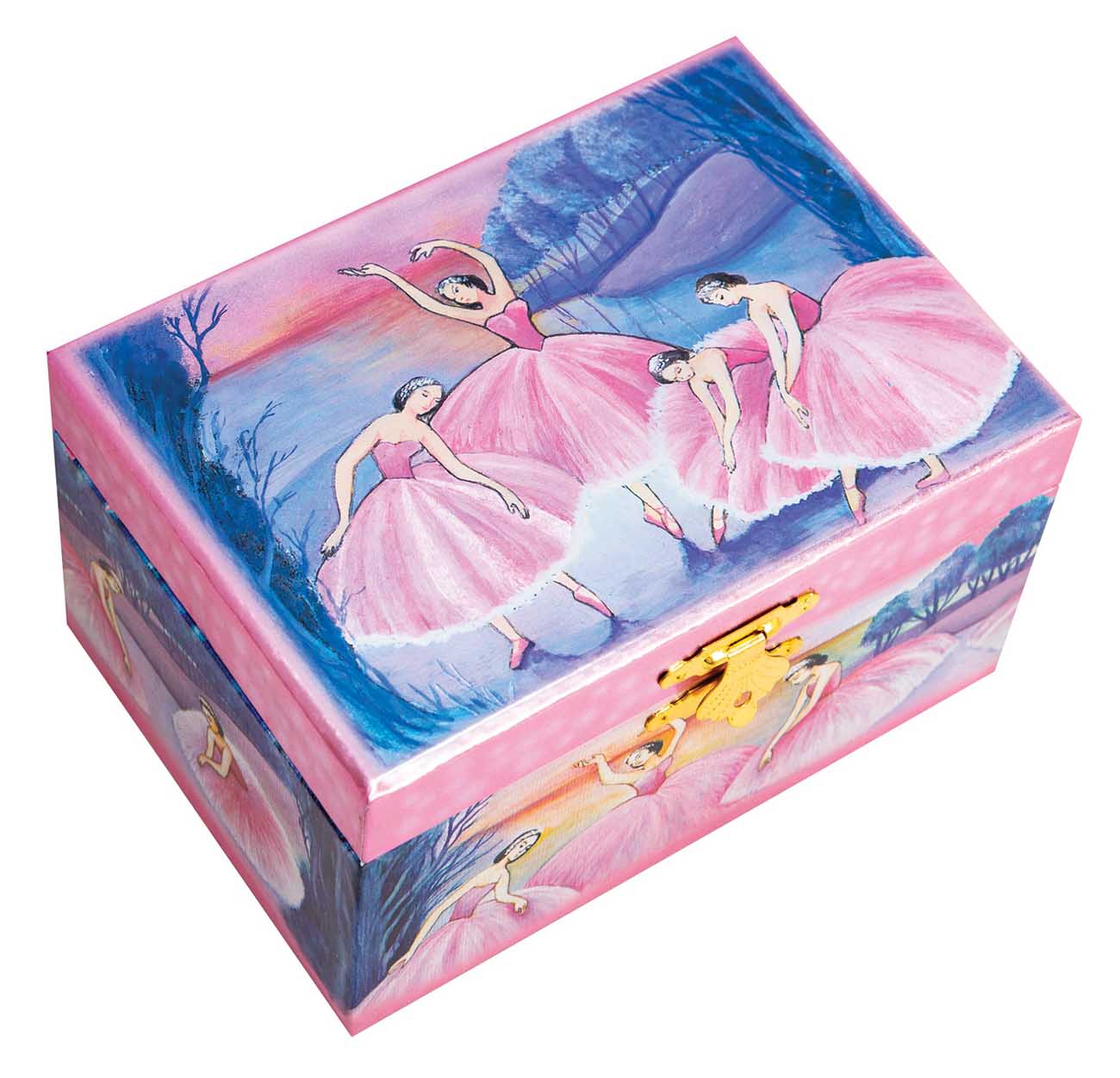 Features beautiful pink ballerina illustrations on the exterior of the box.
