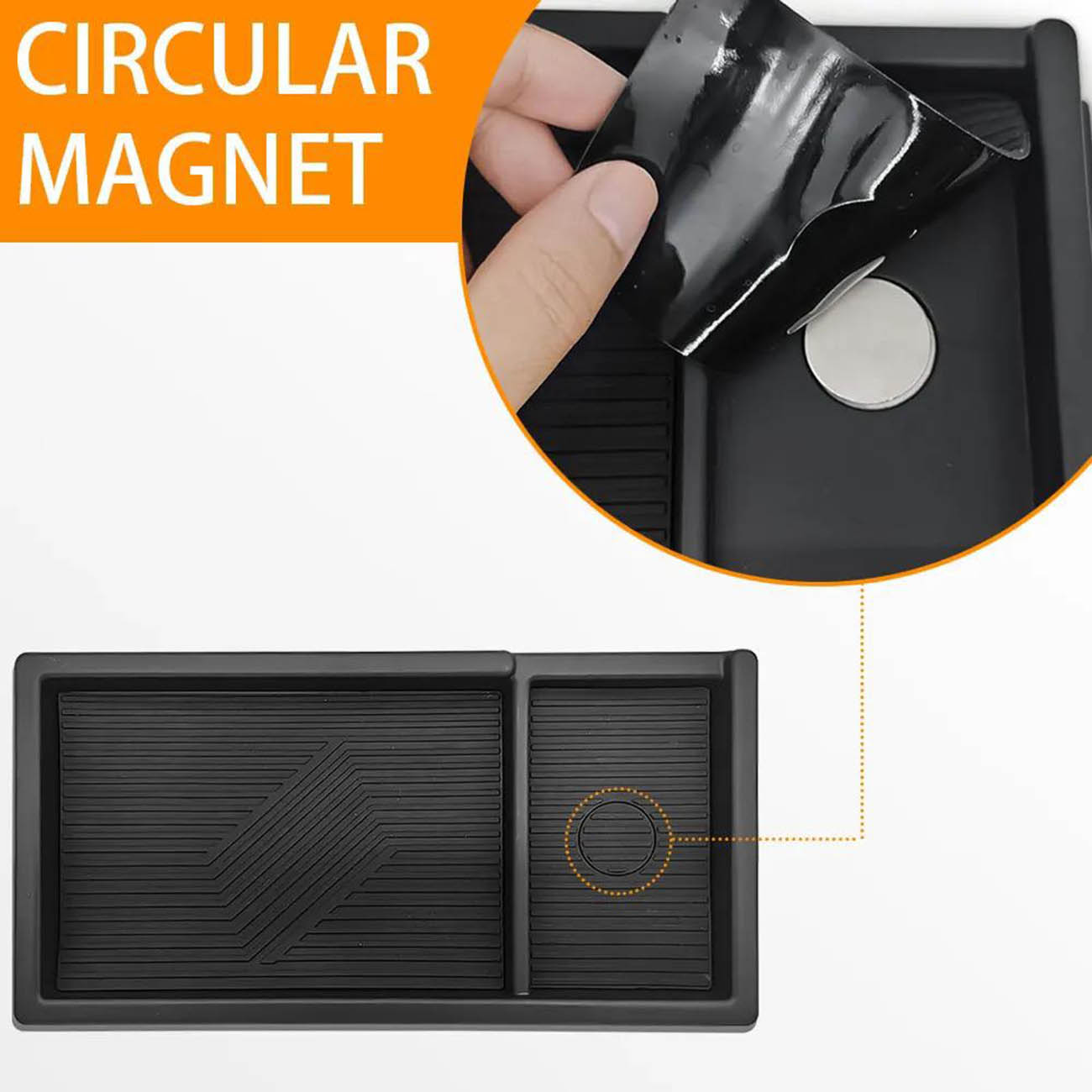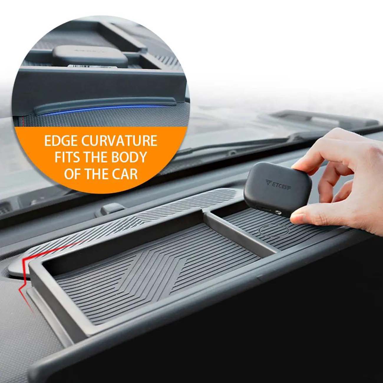 Fits behind the car's screen .. providing extra storage space for your keys .. phone .. or other items.