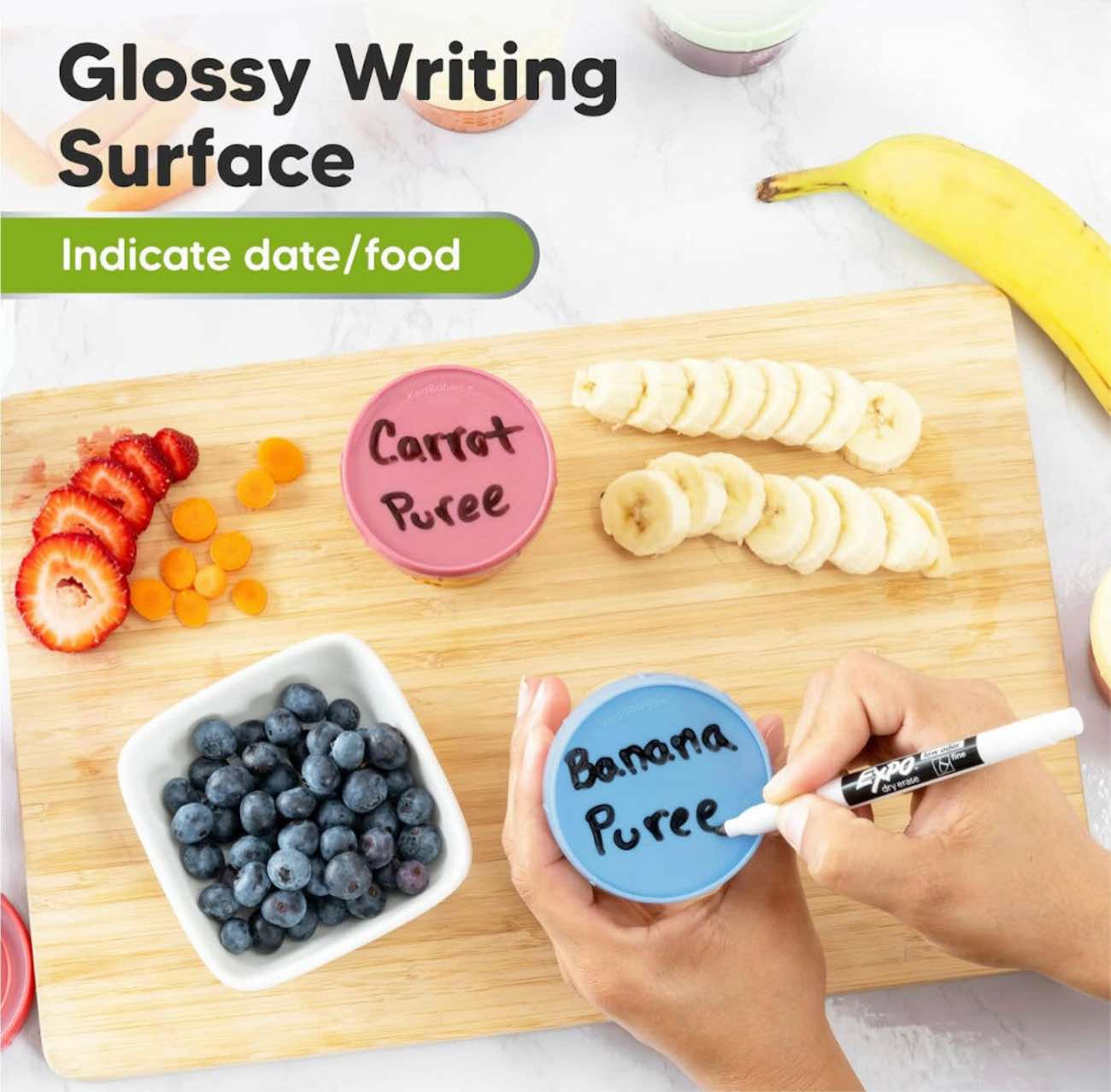 Includes 12 small containers for safely and conveniently storing your child’s food.