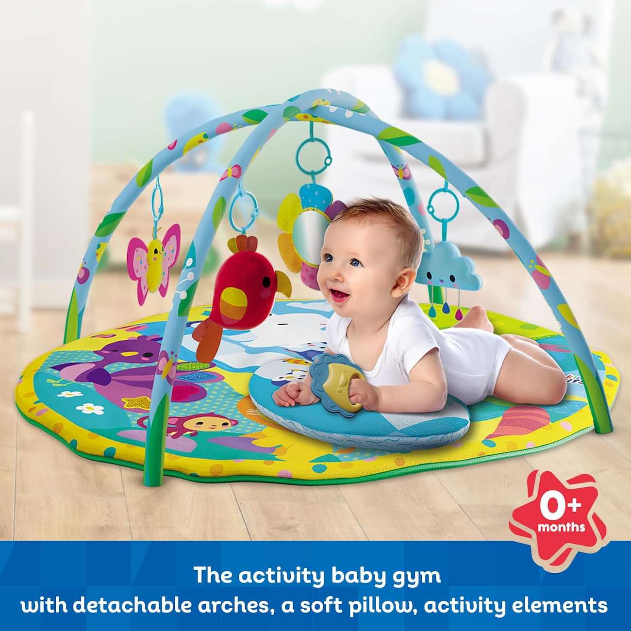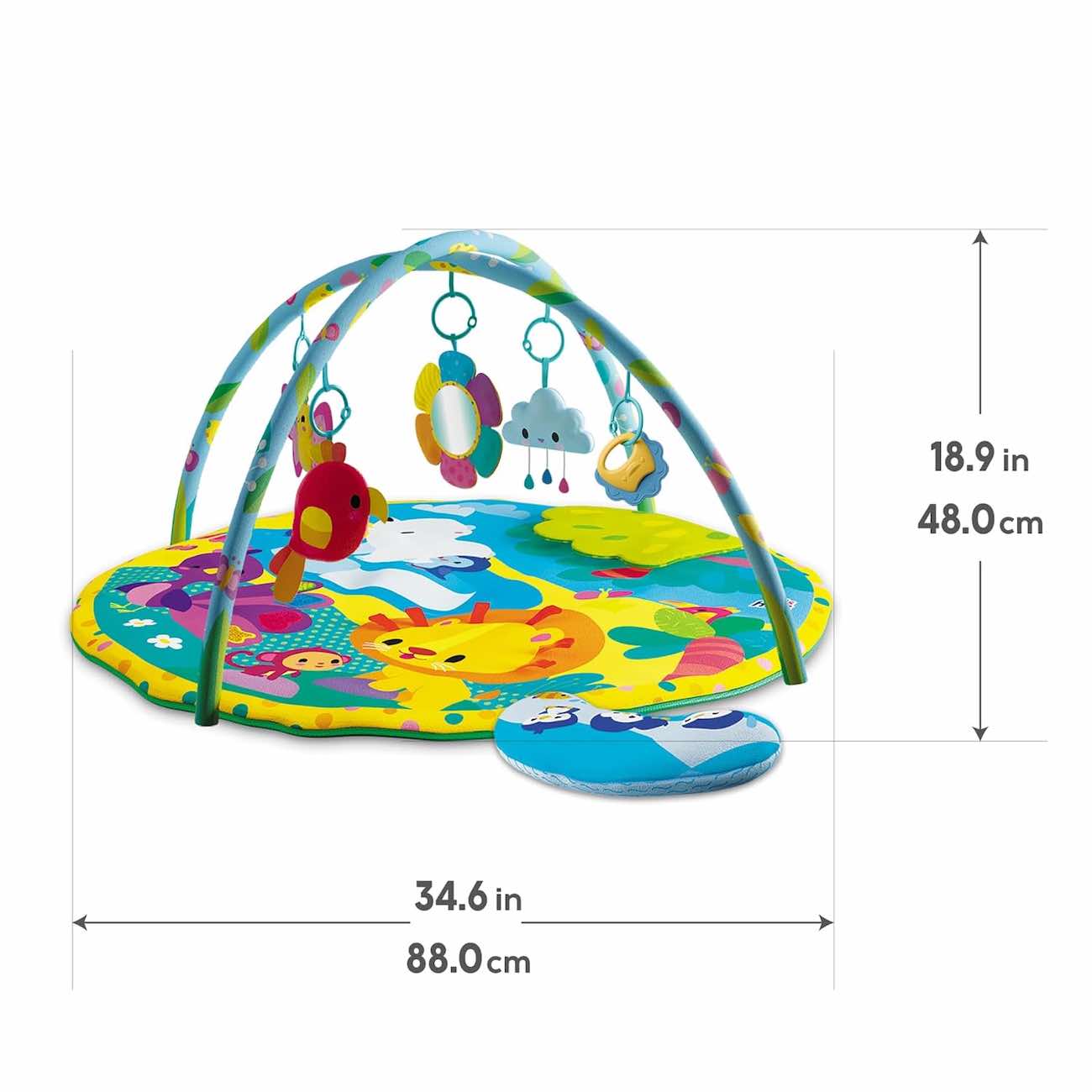 Includes a baby pillow to make tummy time more comfortable.