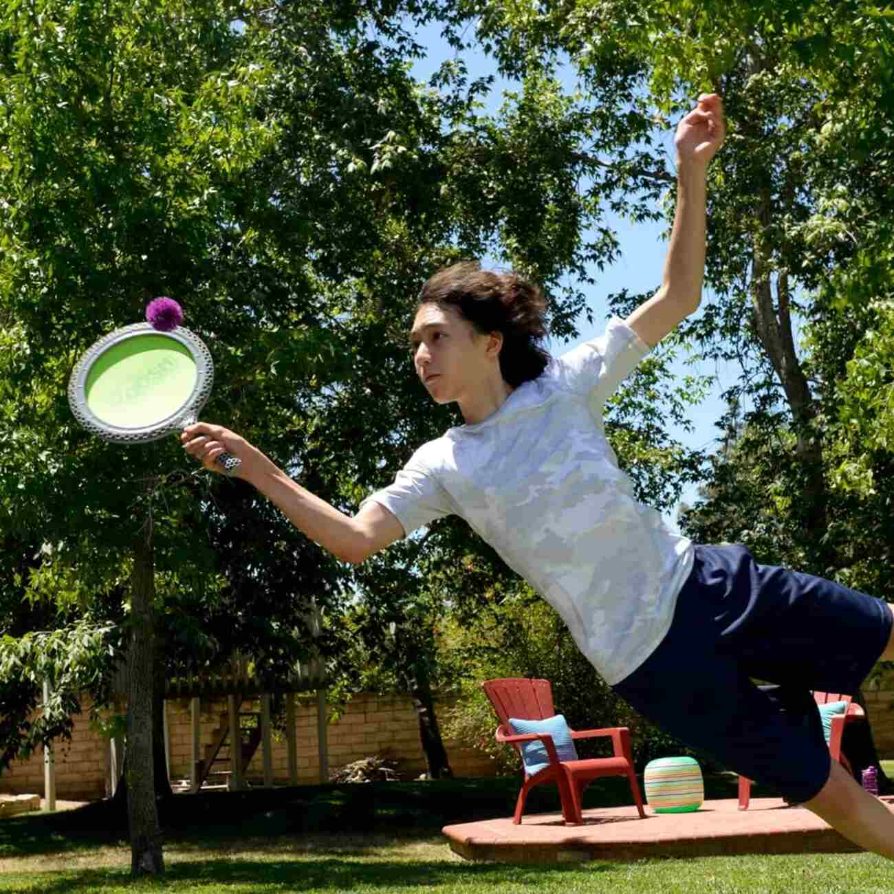 A paddle set with a rubber ball.