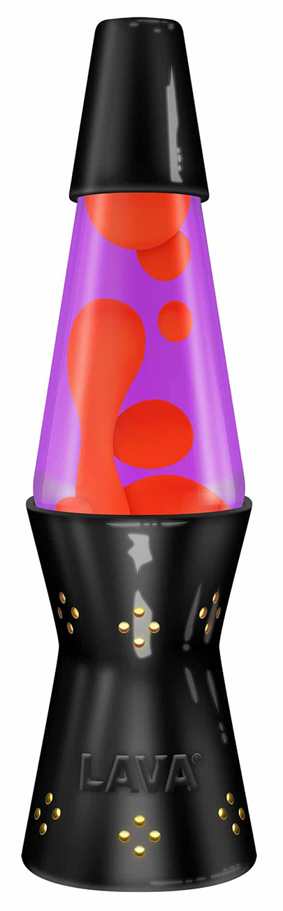 Features a candle holder at the base .. once heated .. the colored liquid inside the lamp starts to move.