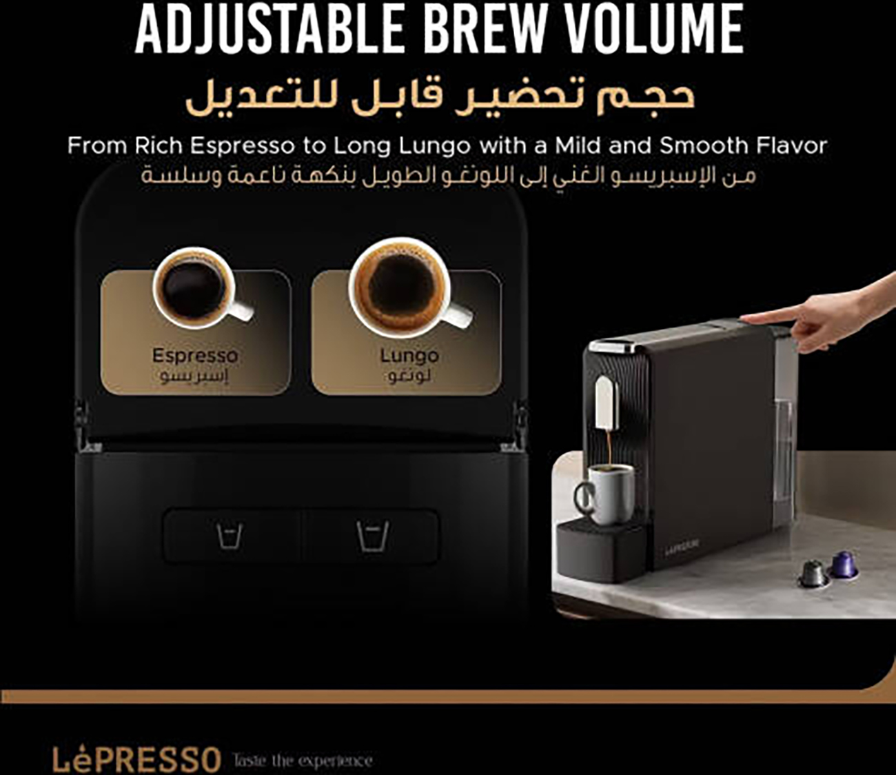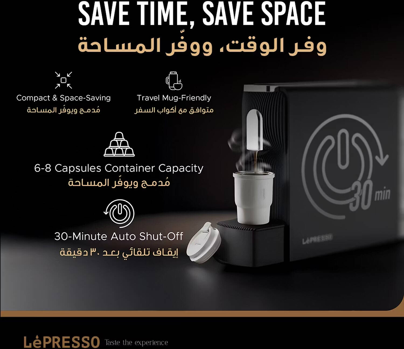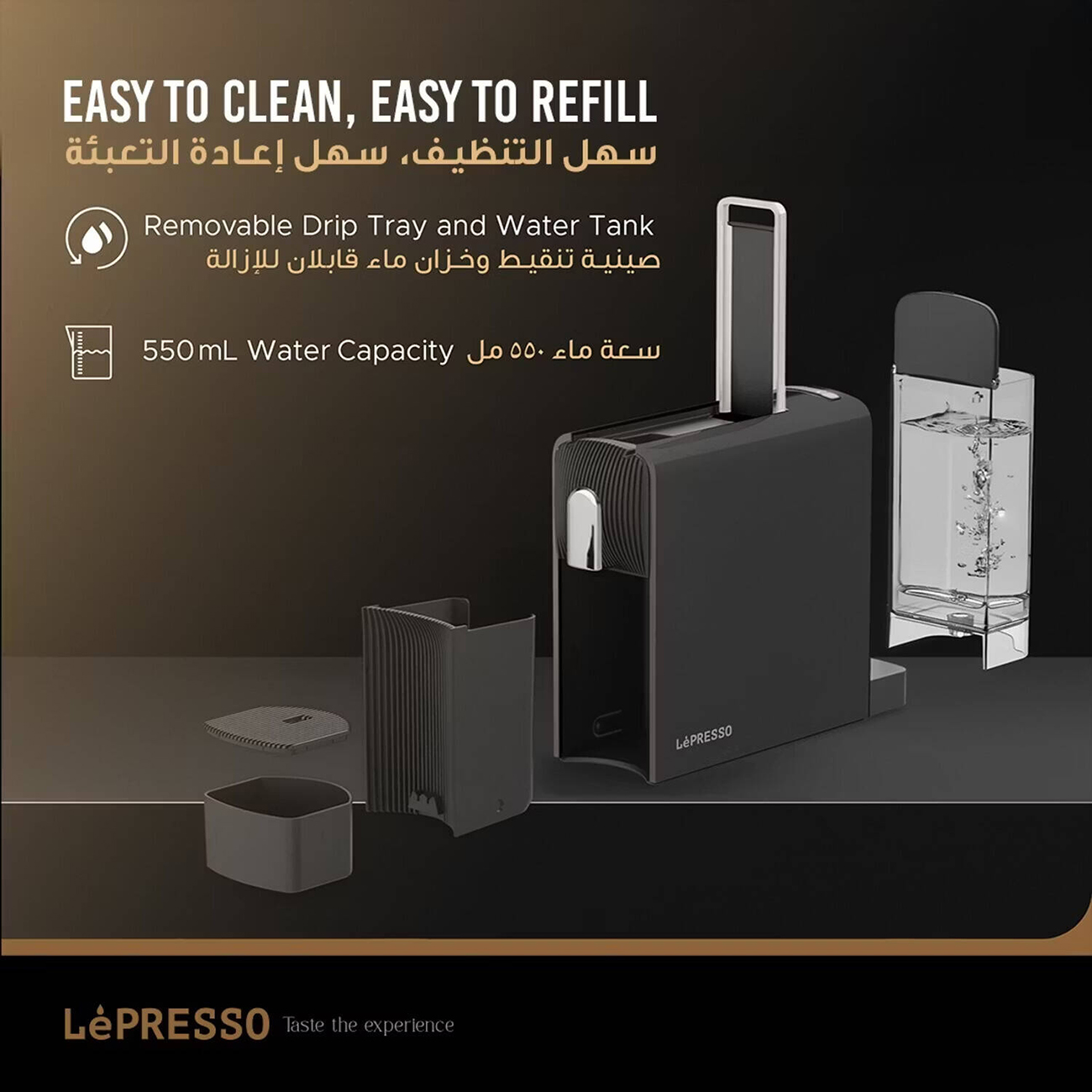 LePresso Trezza Coffee Machine / 1 L Capacity / Works with Capsules & Ground Coffee / Black