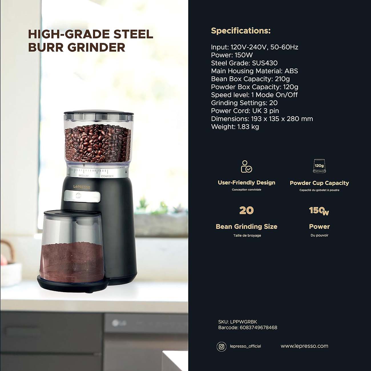 High-quality coffee grinder by LePresso.