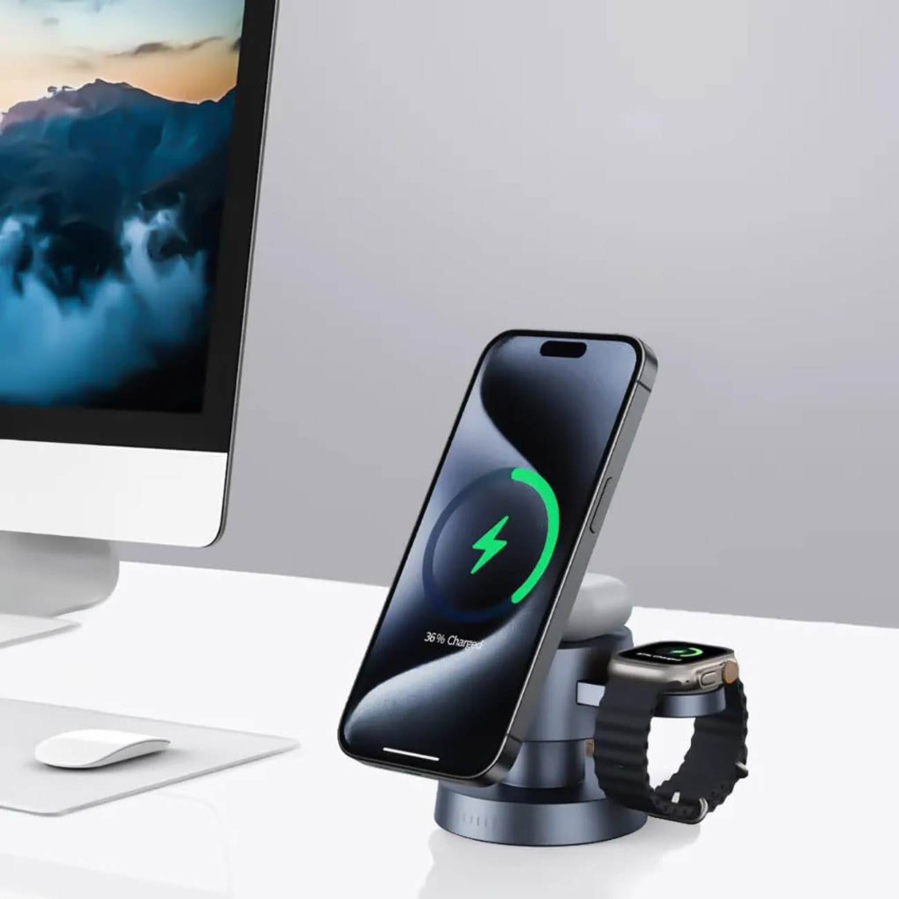 Moxedo Foldable Stand & Charger / Charges Phone + Watch + AirPods / Supports MagSafe