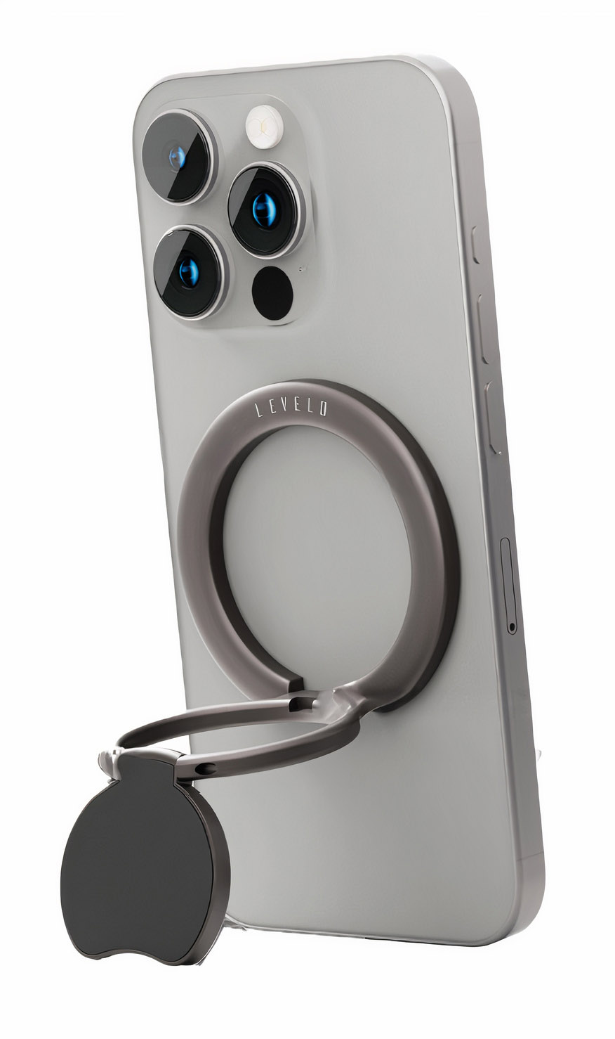 Hand grip and stand for iPhone with easy and quick magnetic attachment.