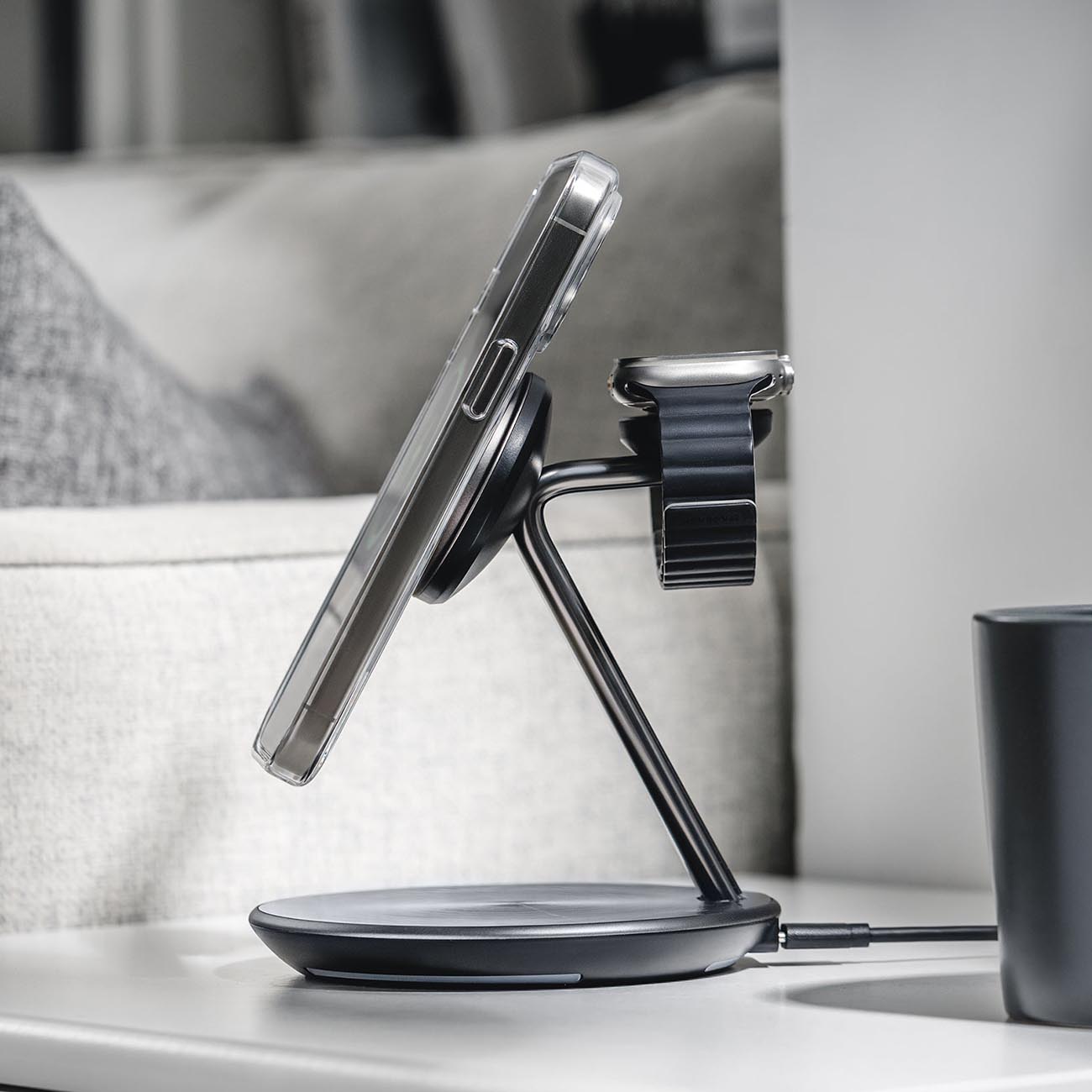 Native Union Stand & Charger / For iPhone + Apple Watch + AirPods / Supports MagSafe / Black