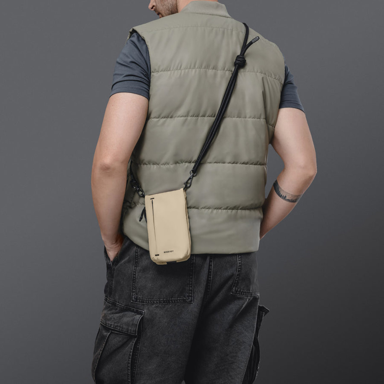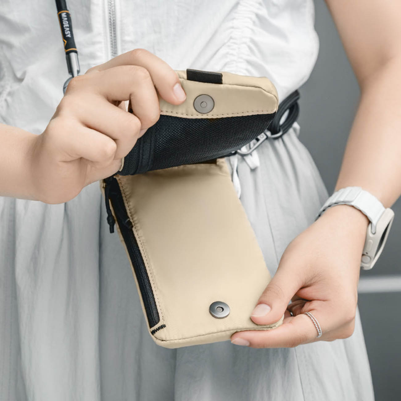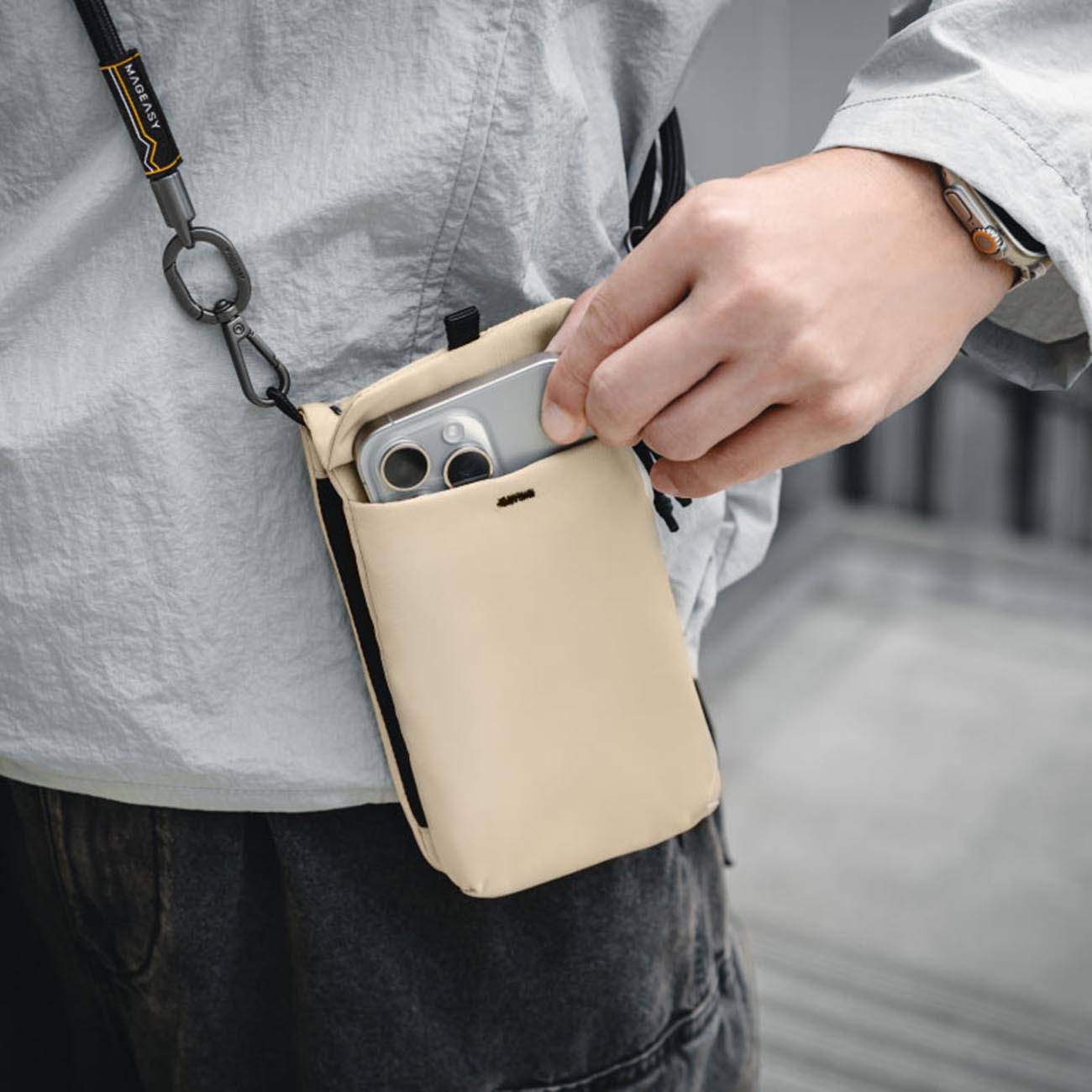 MagEasy Phone Crossbody Bag / Foldable / Beige With Black Strap in Qatar
