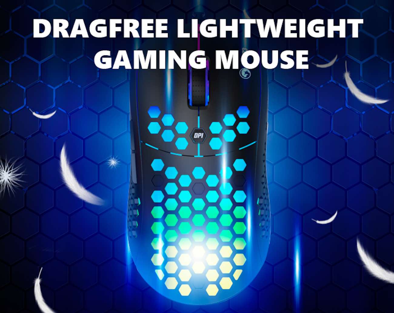 The mouse is lightweight with responsive buttons and a 6400 DPI sensor.