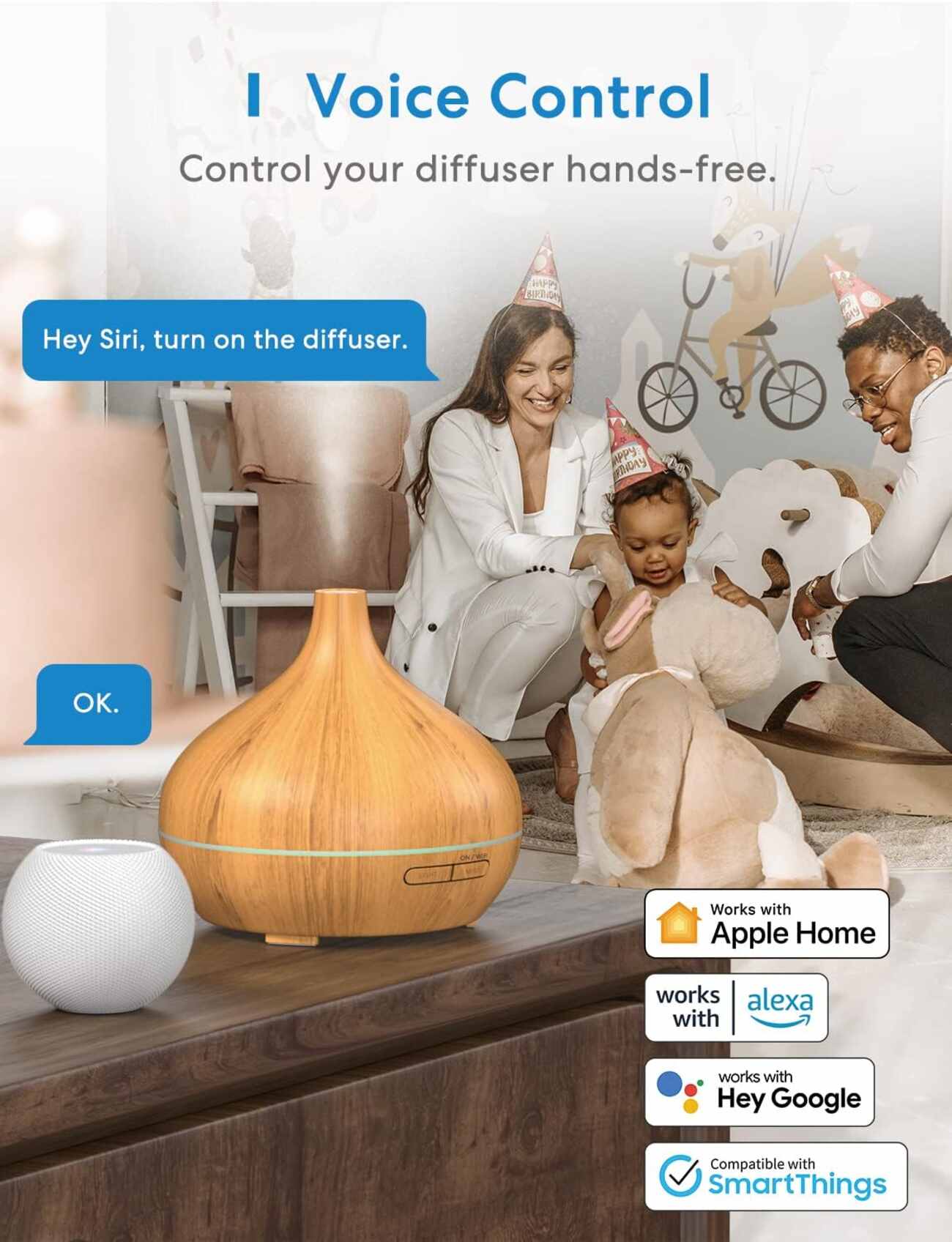 Compatible with Apple HomeKit, Amazon Alexa, and Google Assistant.