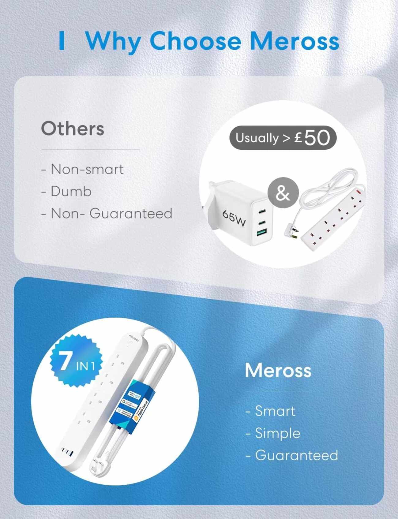 Easy mobile control via the Meross app for both iPhone and Android.