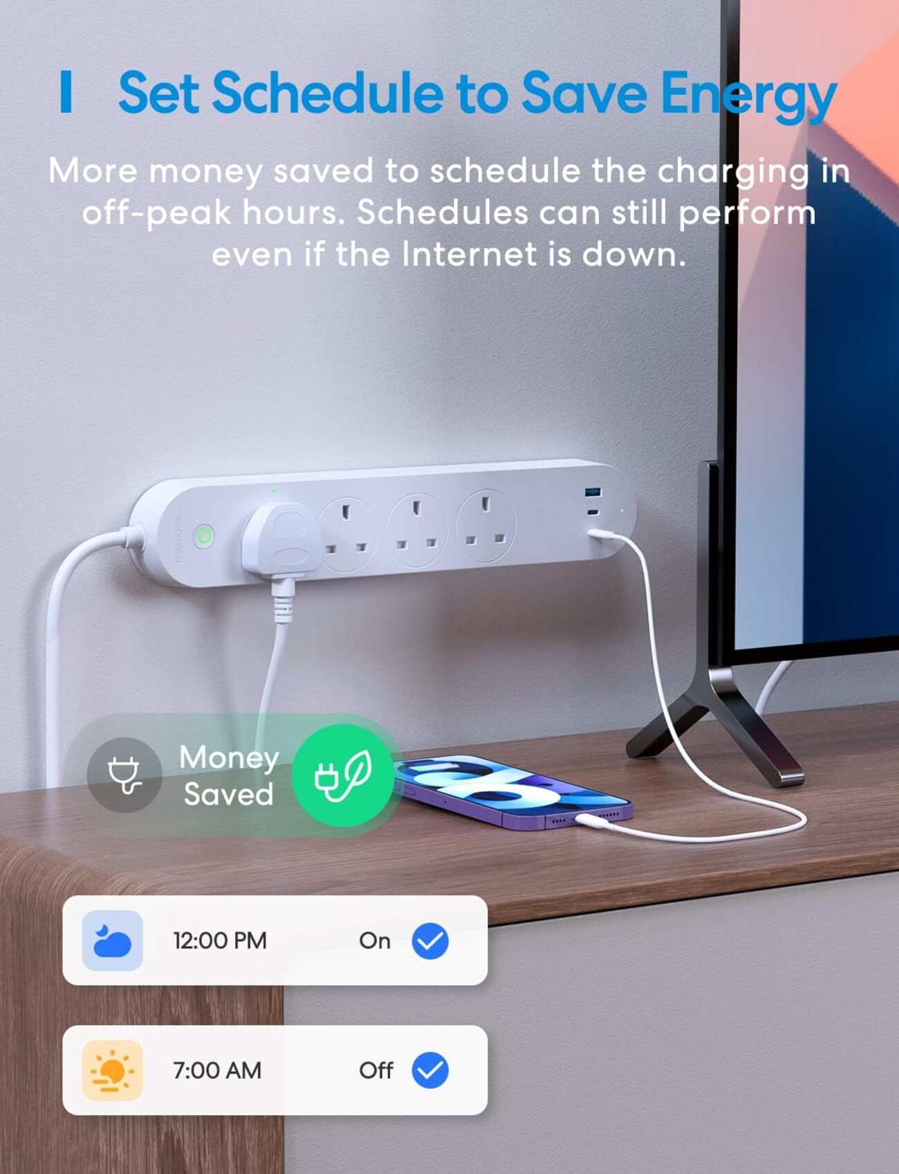 Create schedules and timers for each power outlet and the 3 USB ports.