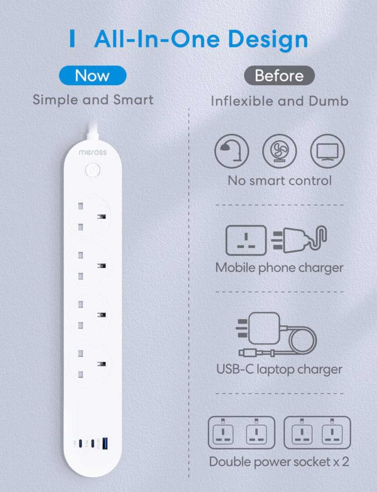 Individual control of each outlet among the 4 outlets through the Meross app, even when you're away from home.