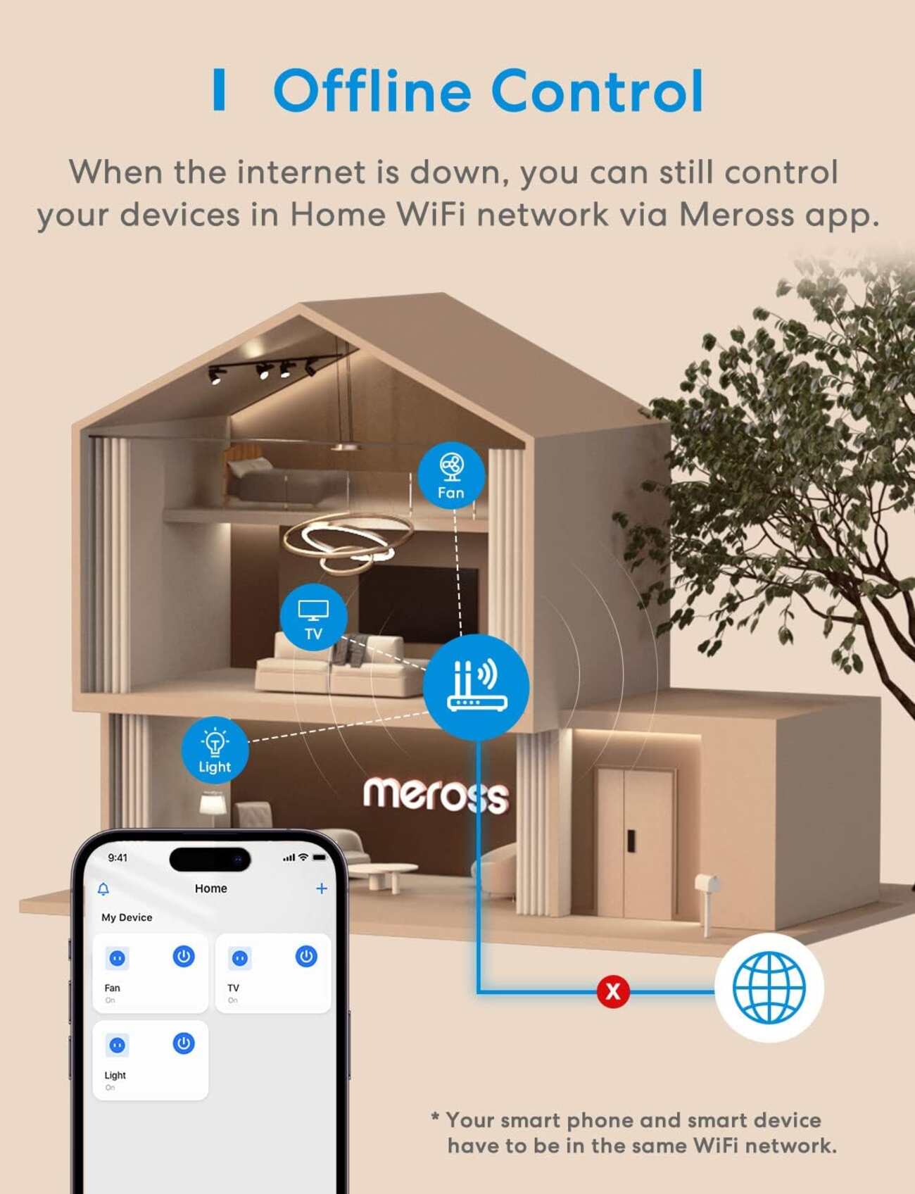Control your devices from your mobile phone using the Meross app, no matter where you are.