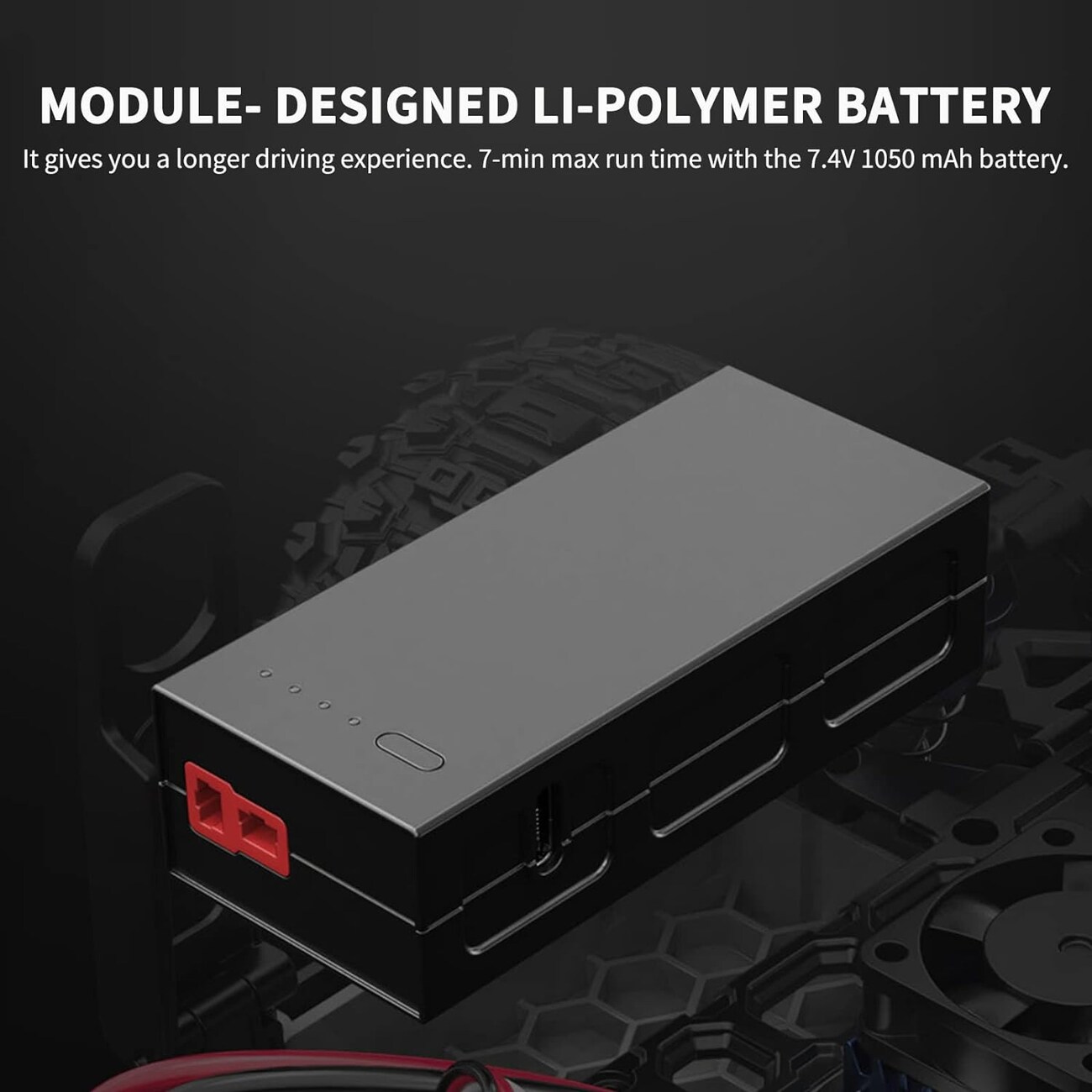 Battery-operated with a capacity of 1050 mAh.