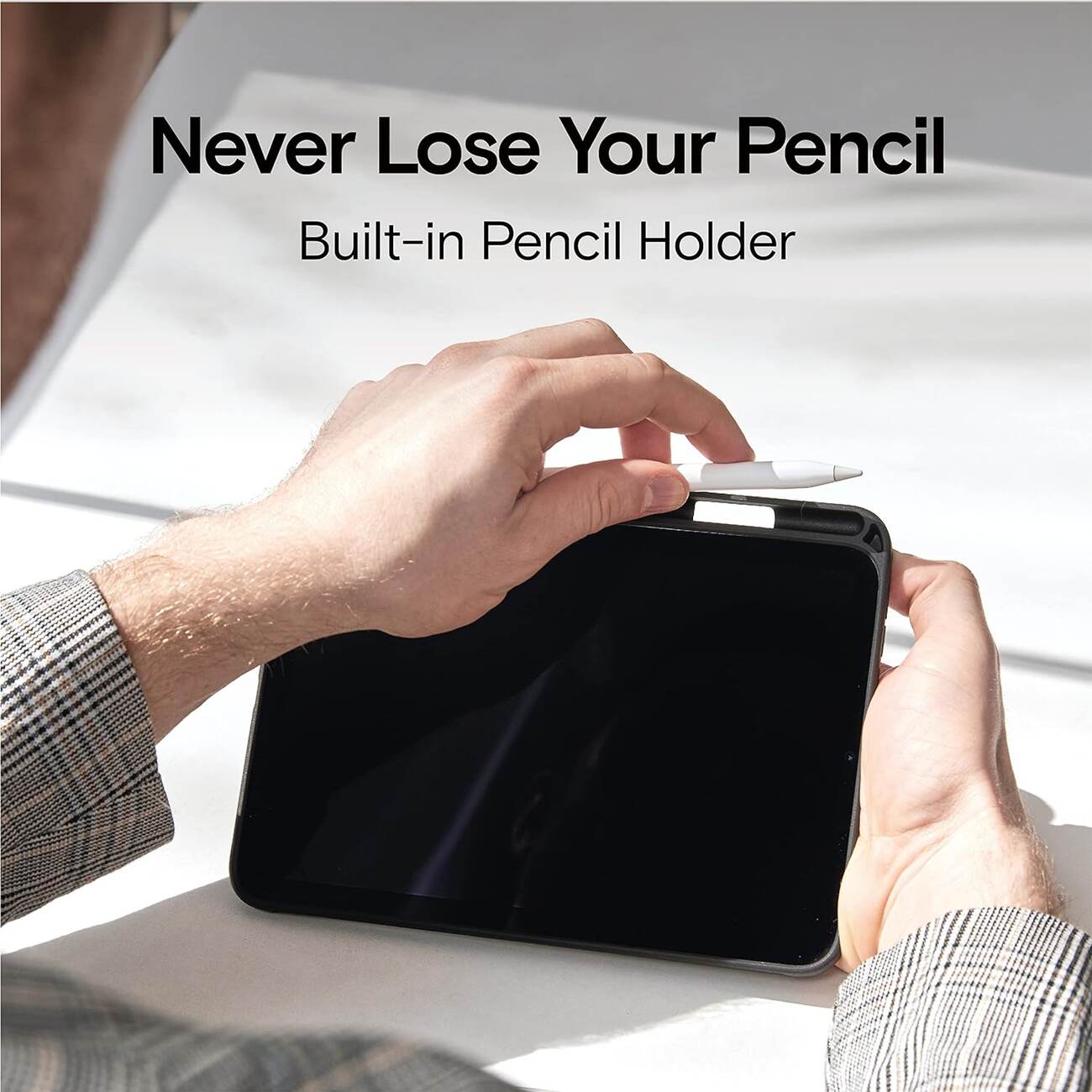 Includes a slot to securely hold an Apple Pencil, preventing loss.
