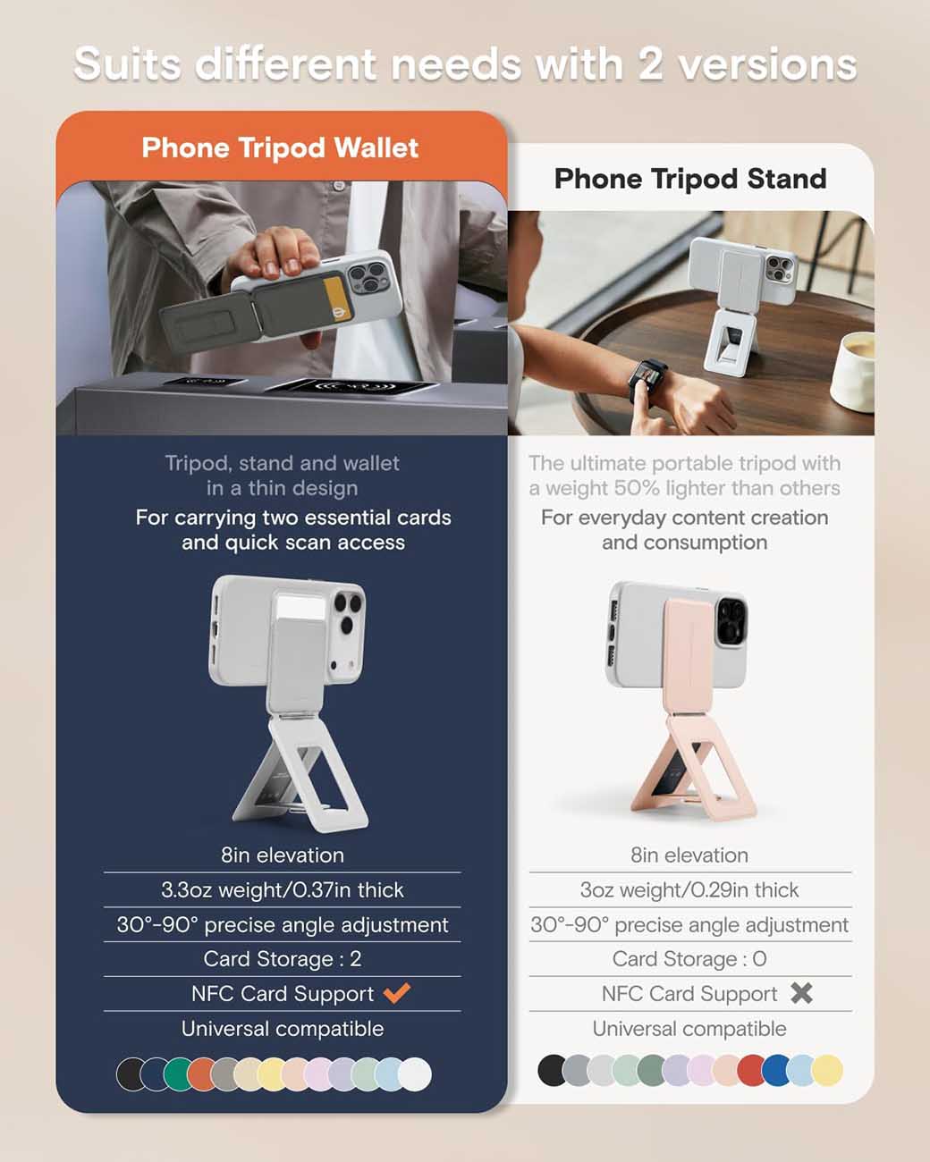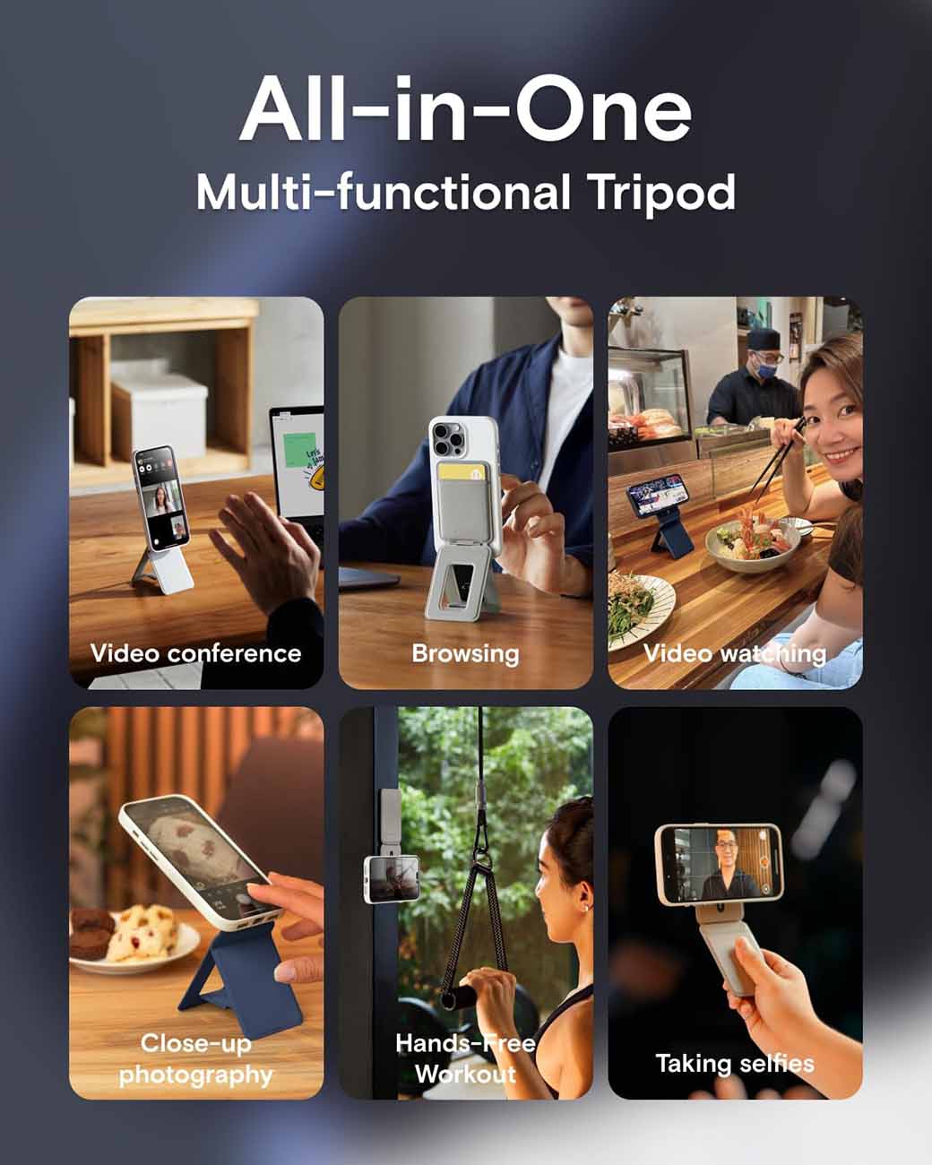 MOFT iPhone Stand & Tripod / Built-in Wallet / Folds & Converts to Tripod / MagSafe / Misty Cove