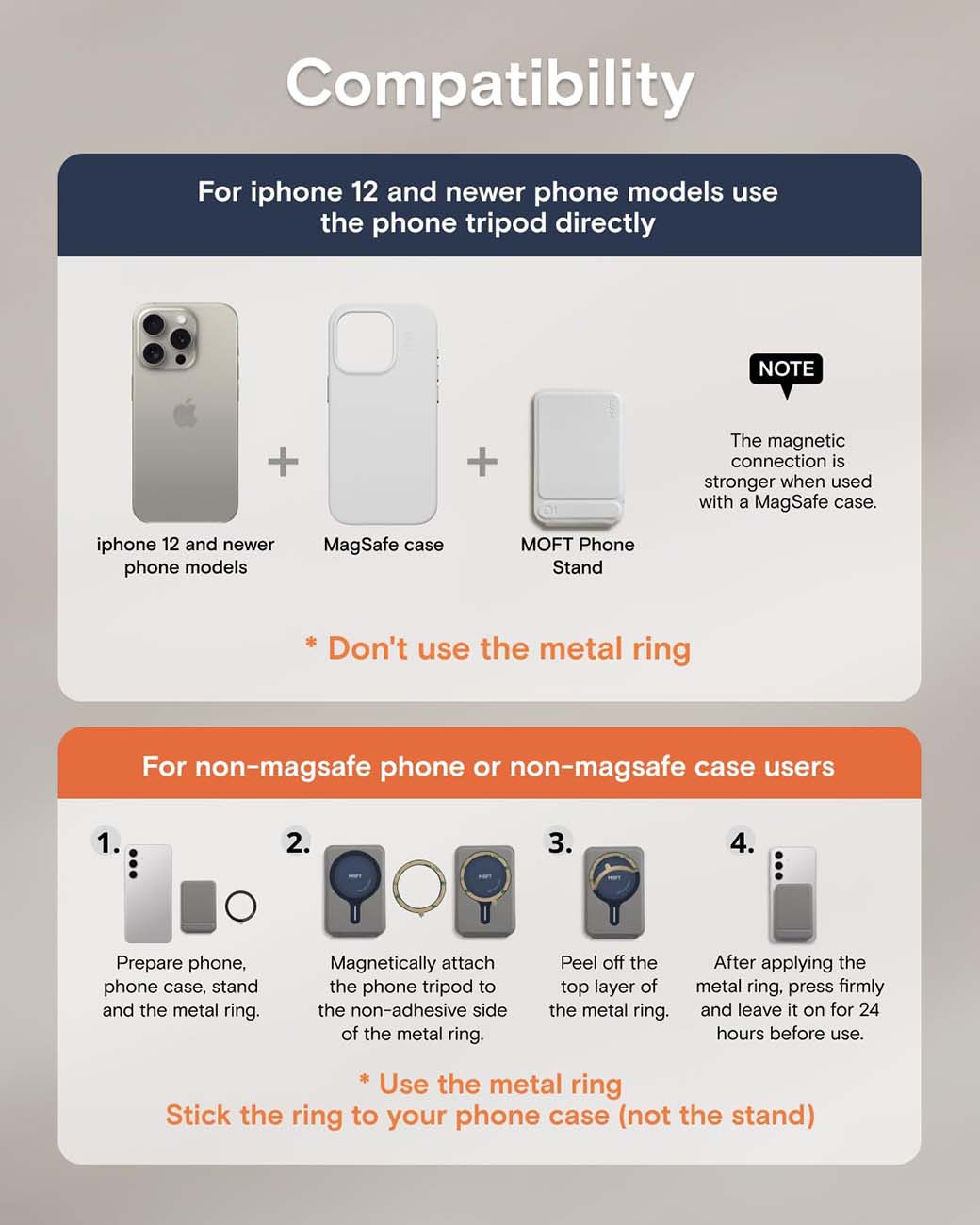 Comes with a MagSafe piece you can attach to your non-MagSafe cases.