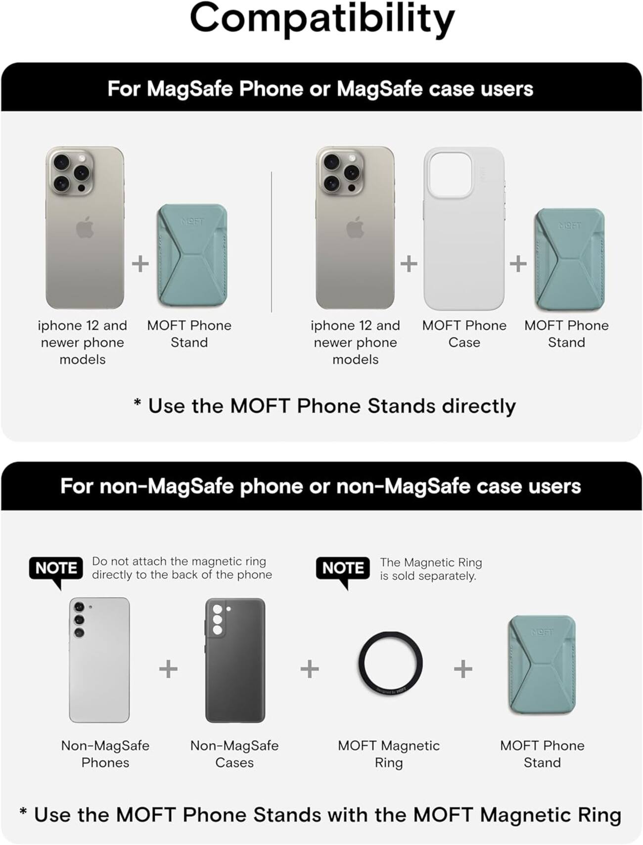The new generation of Moft phone stands .. supporting MagSafe technology for iPhone 12 .. 13 .. 14 .. and all variations of iPhone 15.