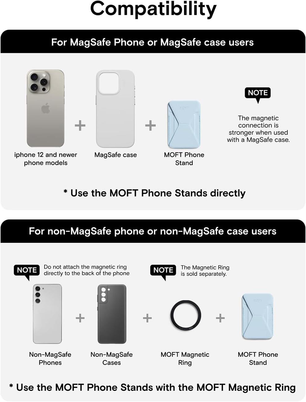 The latest generation of MOFT’s amazing phone stands .. compatible with MagSafe technology for iPhone 12 .. 13 .. 14 .. 15 .. and all models of 16.