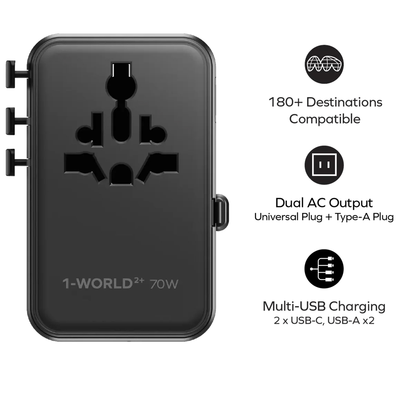Momax World 2 Travel Adapter / 5 Ports / Supports Over 180 Countries / 70W Power / Titanium