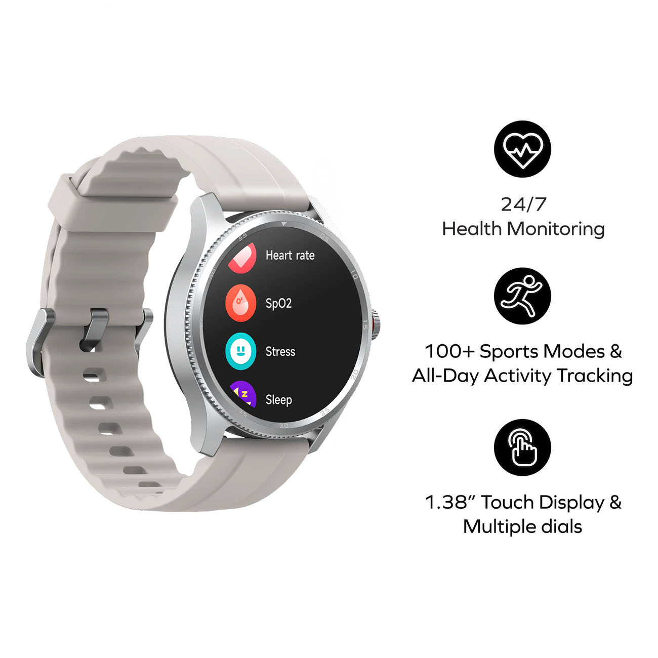 Features a 1.83-inch circular TFT display with high clarity and 240x240 resolution.