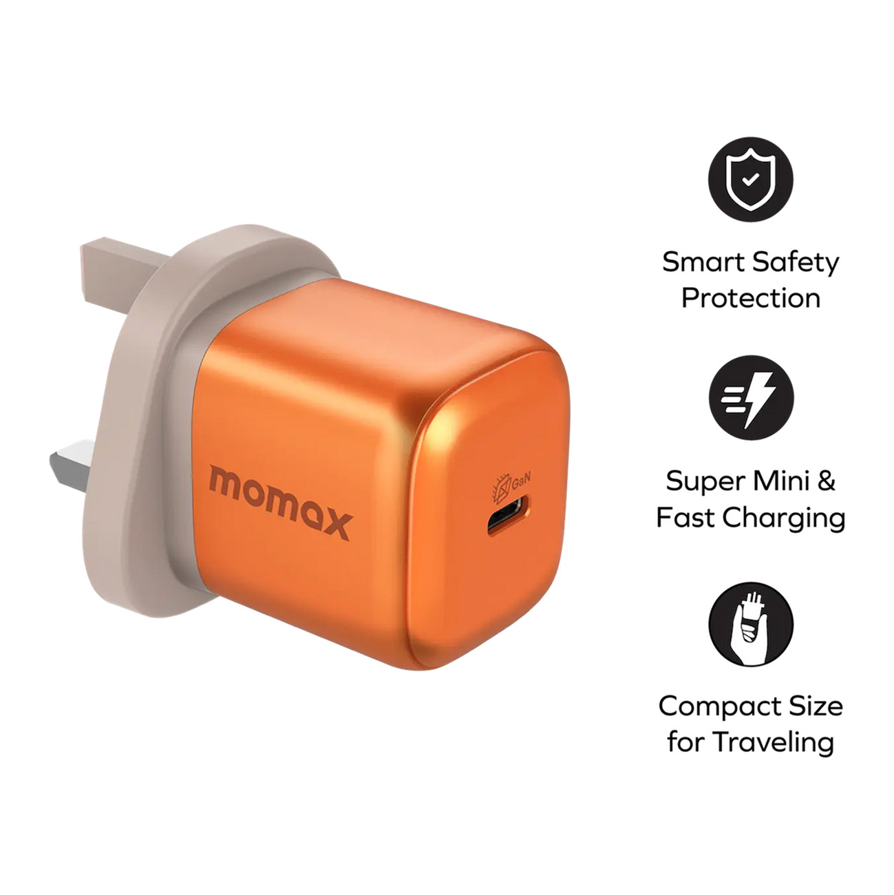 Momax GaN Charger / 45W Power / 2 Type-C Ports / Compact Size / Orange