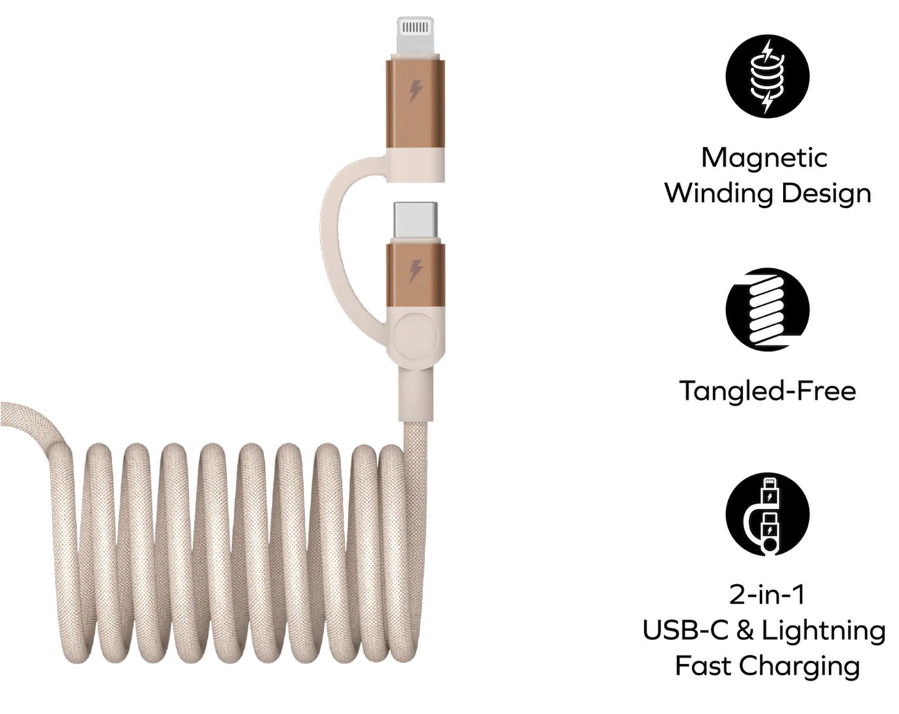 Reduces cable clutter — ideal for charging both Type-C and Lightning devices.
