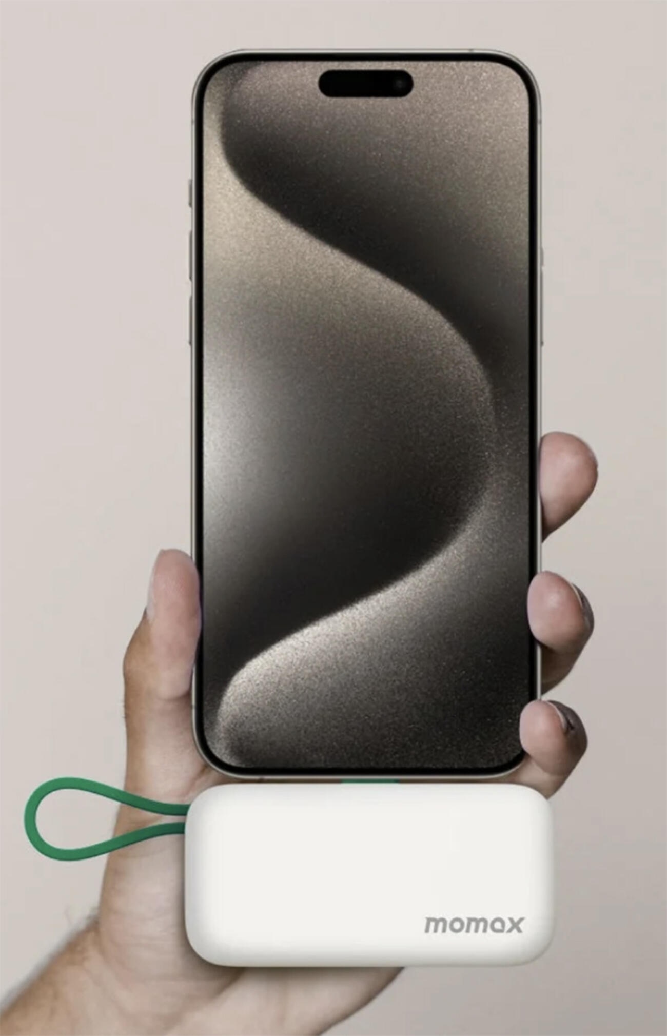 Connects directly to the iPhone through a type-c plug .. with a built-in Type-C cable... and a Type-C fast charging port.
