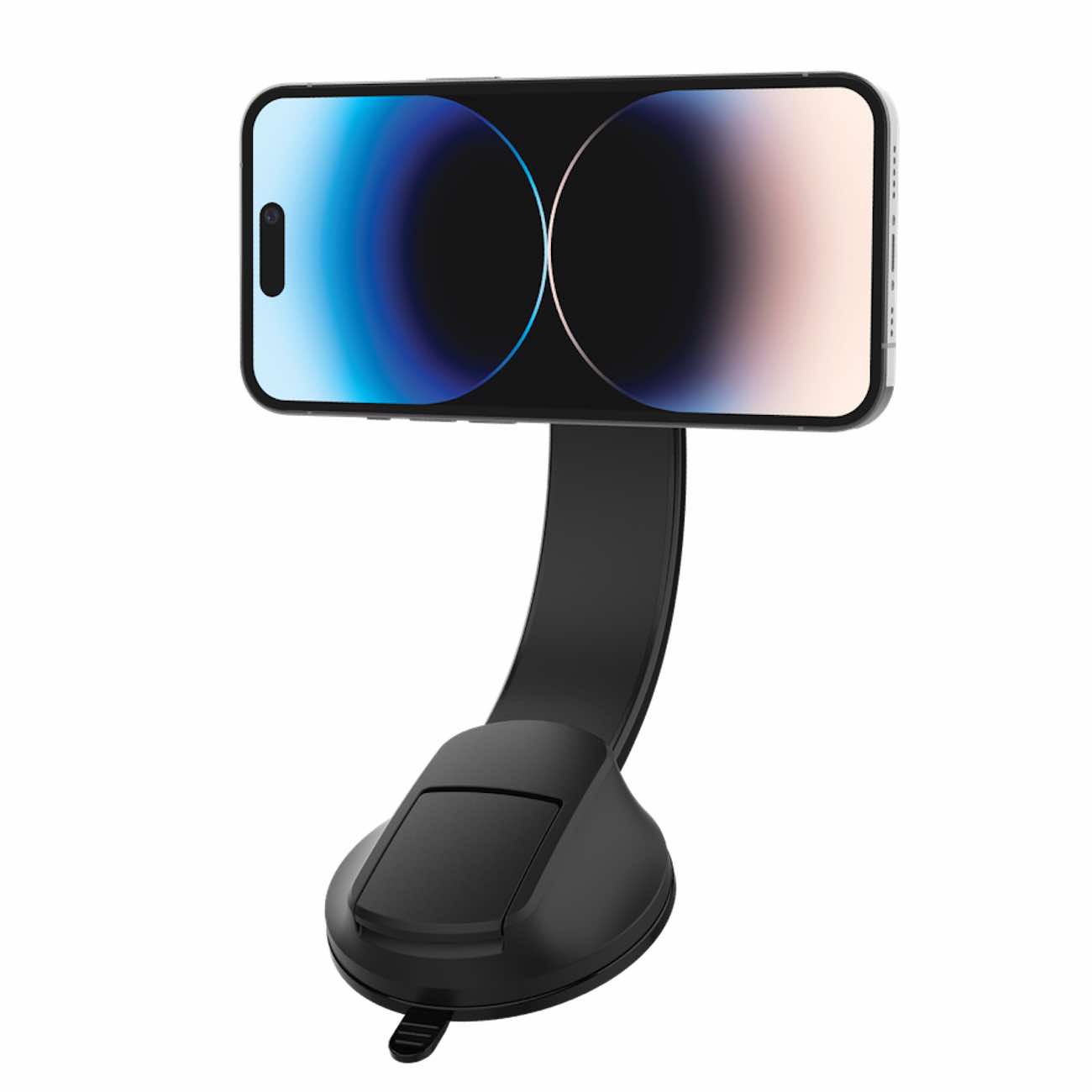 Integrated adhesive for mounting on the car dashboard.