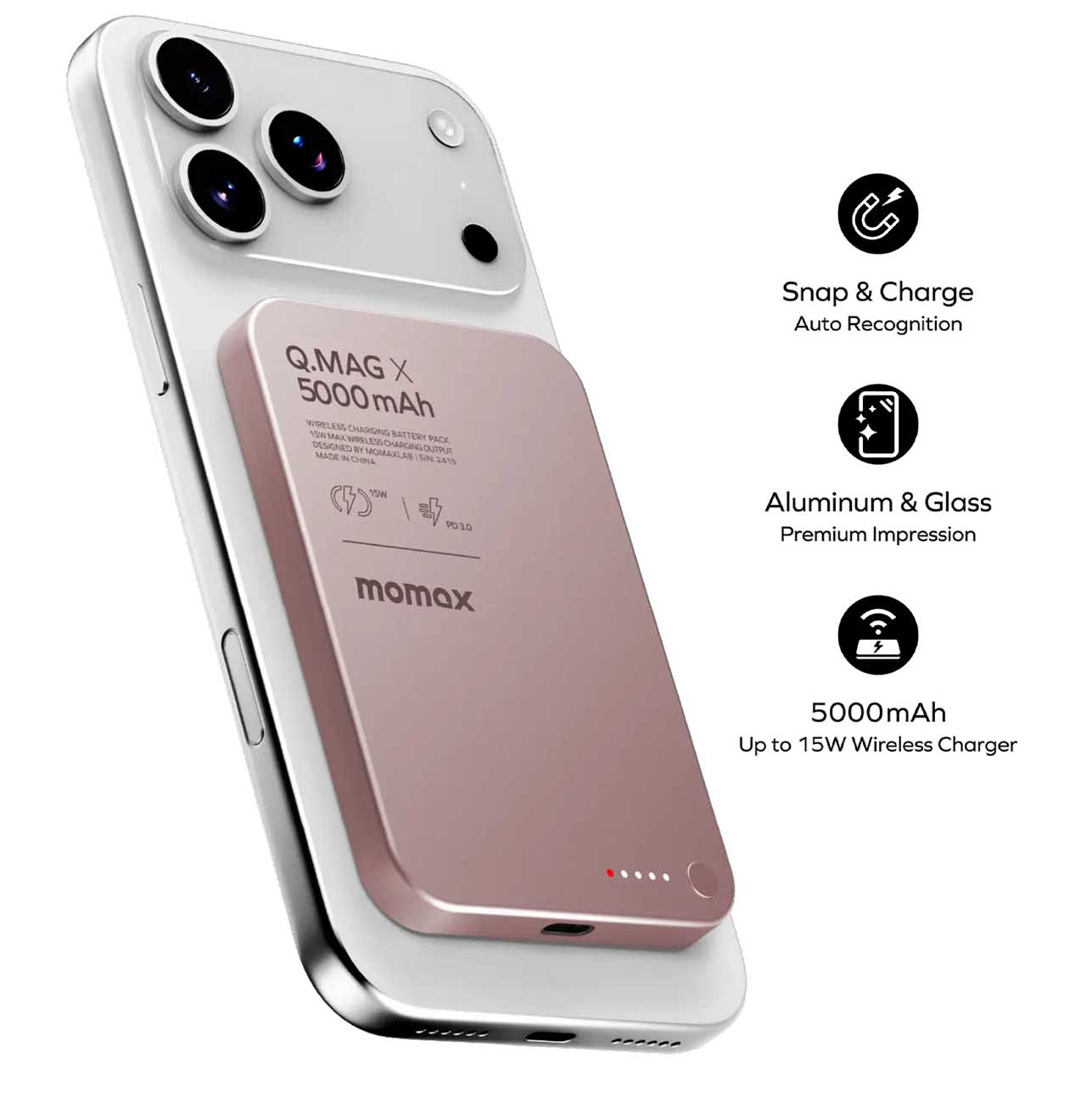 Momax Power S.Pass Magnetic Power Bank / 5000mAh / with Qi2 Technology / Black