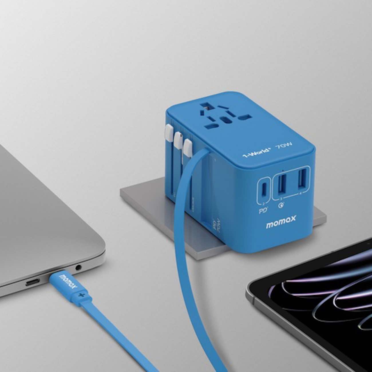Provides 2 Type-C .. 2 USB .. 3 AC power ports .. and a built-in Type-C cable.