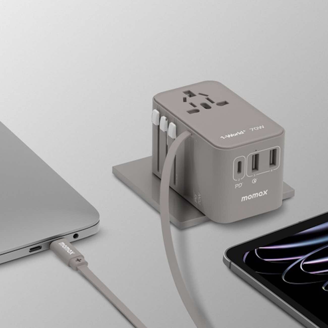 Provides 2 Type-C .. 2 USB .. 3 AC power ports .. and a built-in Type-C cable.