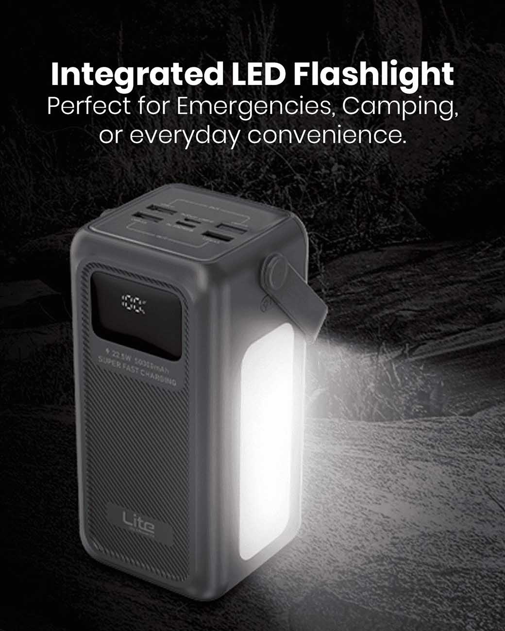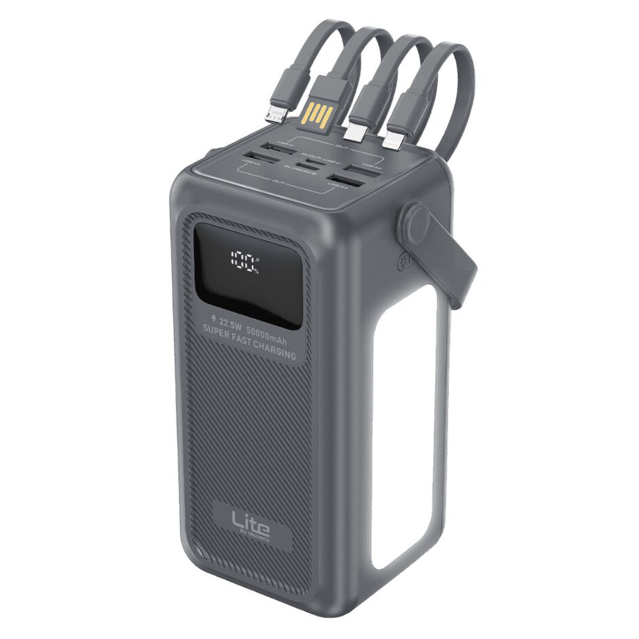 Porodo 50,000 mAh Power Bank / Type-C & 2 USB Ports / Built-in Type-C Cable / 20W Power