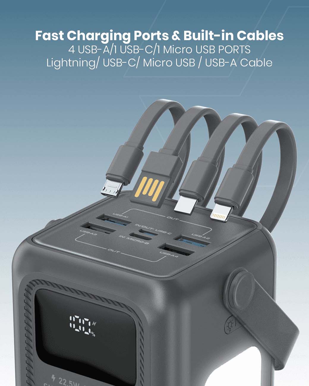 Moxedo 5 in 1 Power Bank Station / Each Battery 10,000 mAh / With Built-in Charging Cable