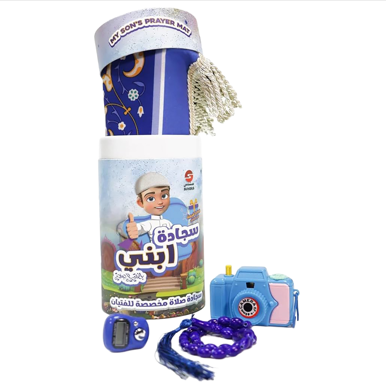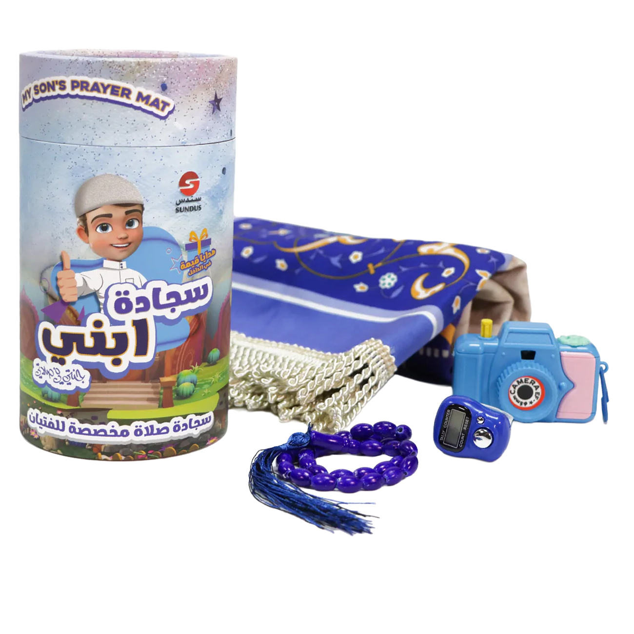 Sundus Kids Prayer Mat Set / Toy Camera + Tasbeeh Counter + Prayer Beads / Lightweight Design / Pink